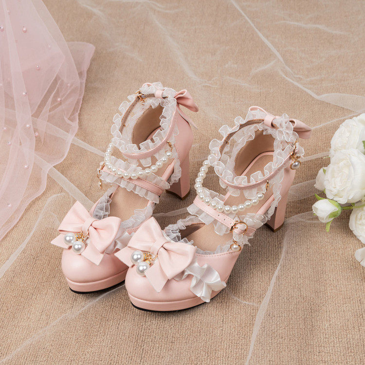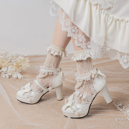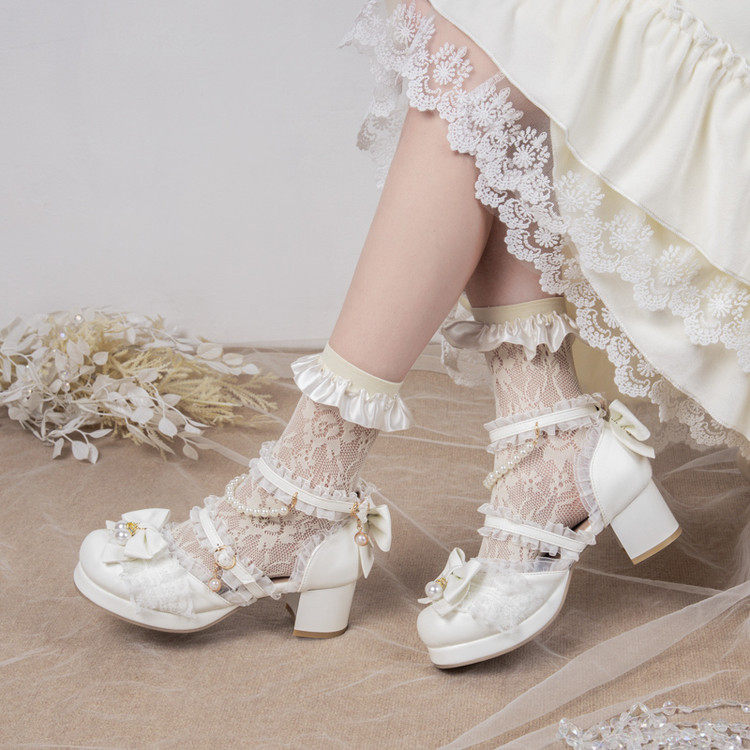 28-48超大小码lolita少女学生高跟性感cos甜美蕾丝茶会白色女公主