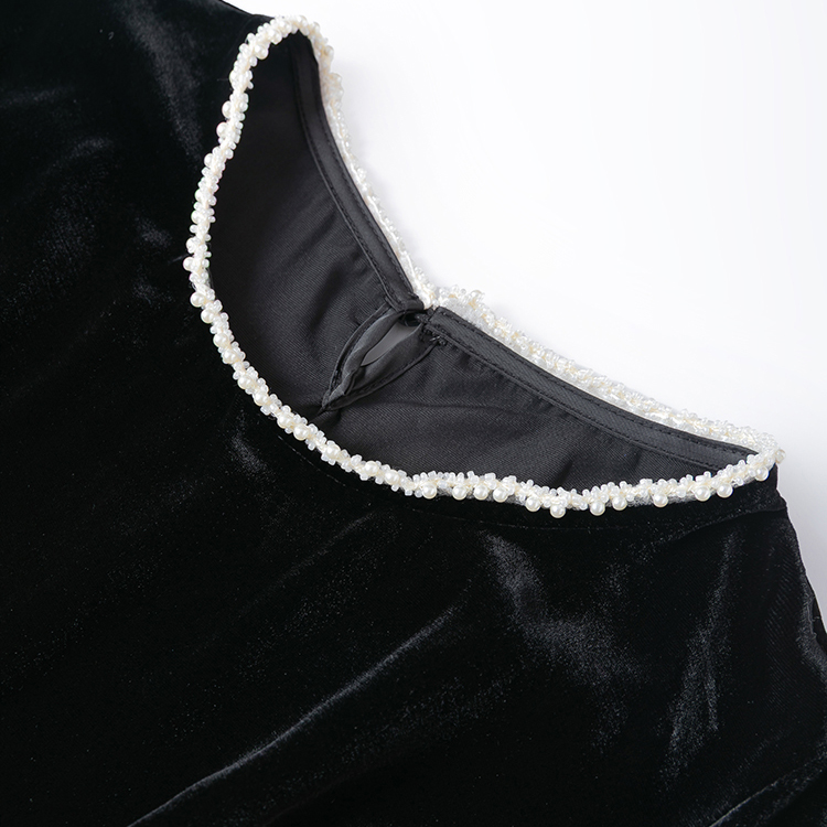 “碎钻礼服裙”真丝丝绒钉珠圆领灯笼长袖宽松A字连衣裙鱼尾裙黑