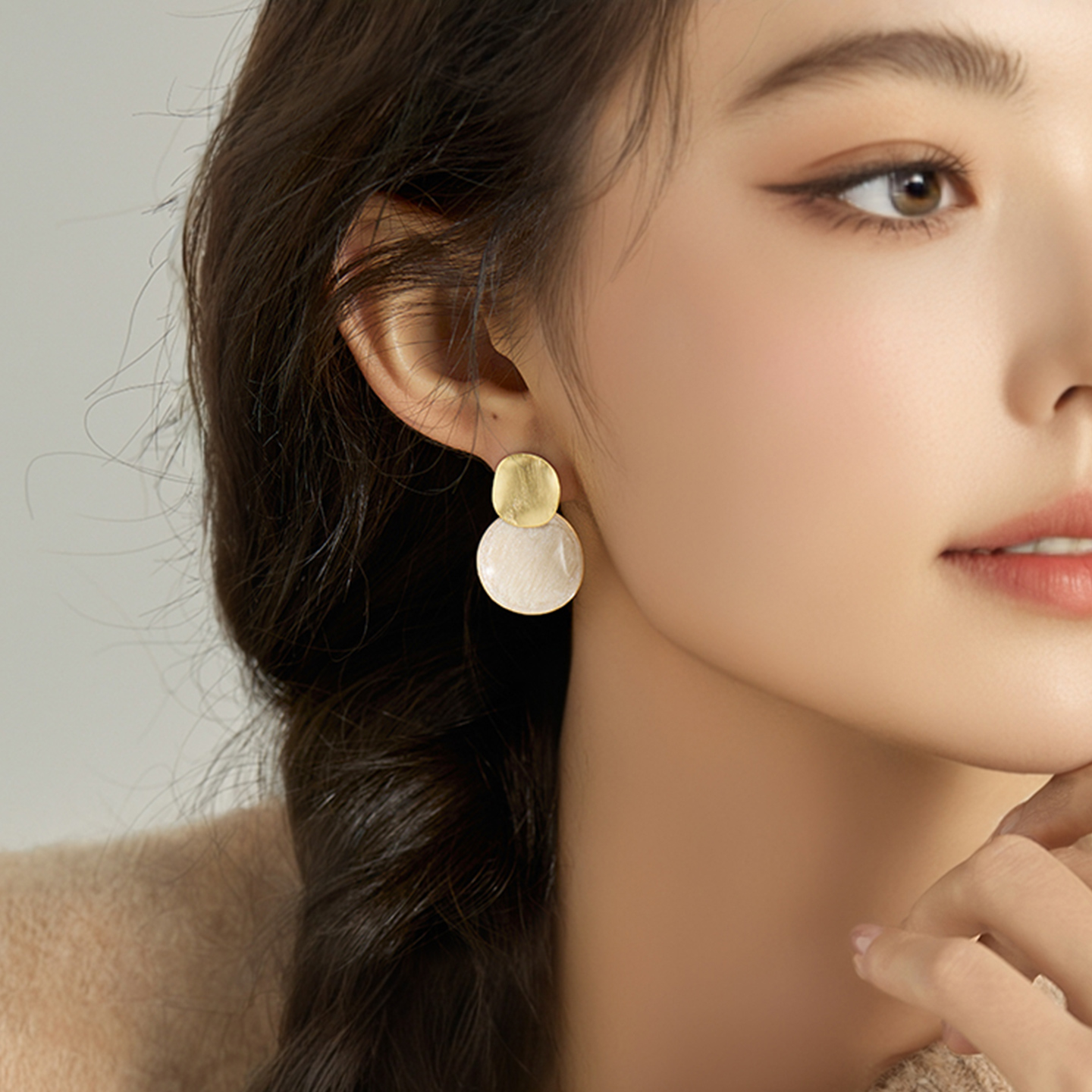 金色耳饰女银耳钉拉丝圆片耳环2025新款爆款高级感独特秋冬耳坠