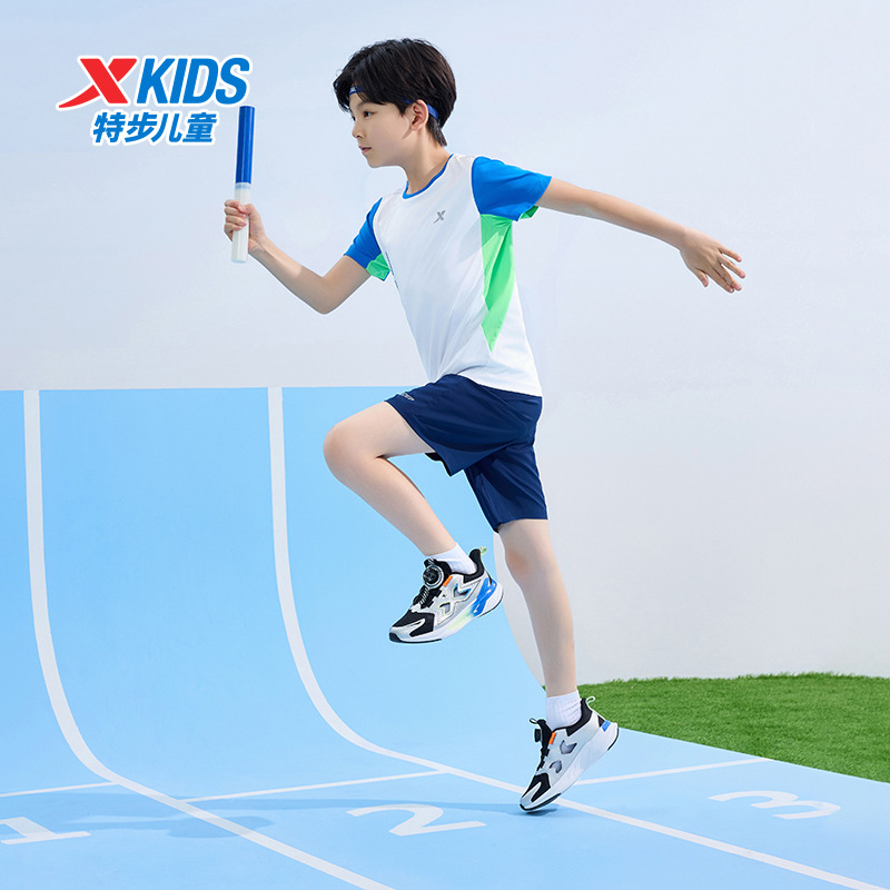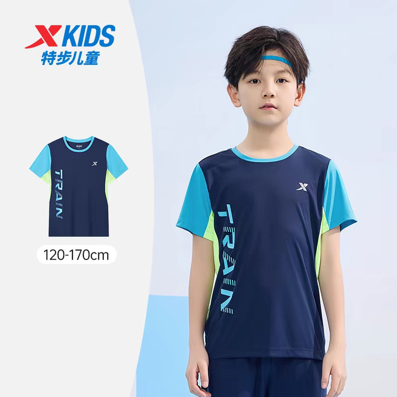 特步儿童速干短袖T恤男童童装2025夏季新款中大童拼接运动短T夏装