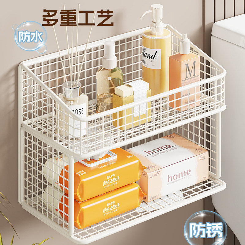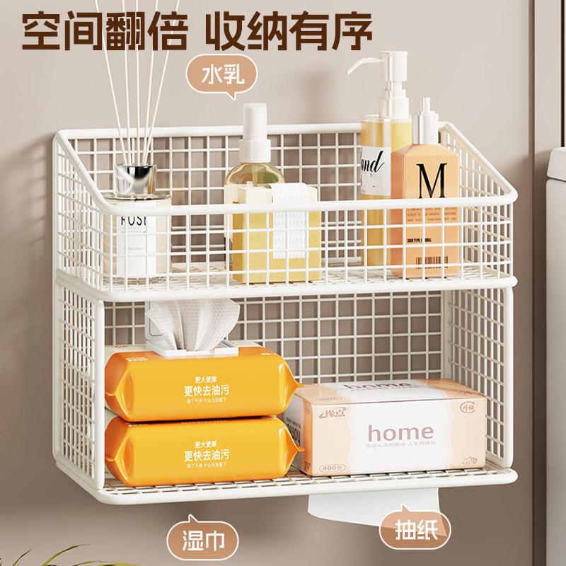 卫生间壁挂式纸巾架厕所免打孔香薰湿巾收纳架分层清洁剂储物架子