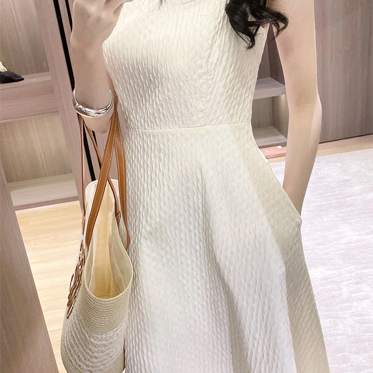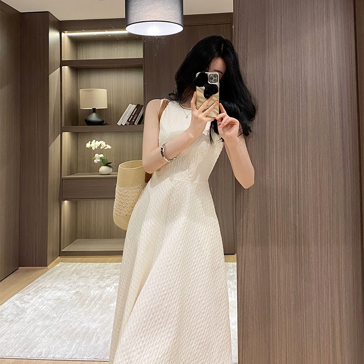 法式复古冷淡风高级感蓬蓬裙收腰显瘦气质赫本风白色连衣裙女夏季