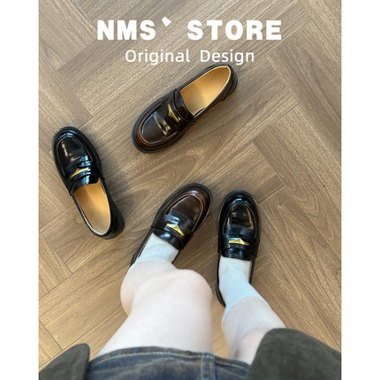 真皮~复古一脚蹬乐福鞋女厚底