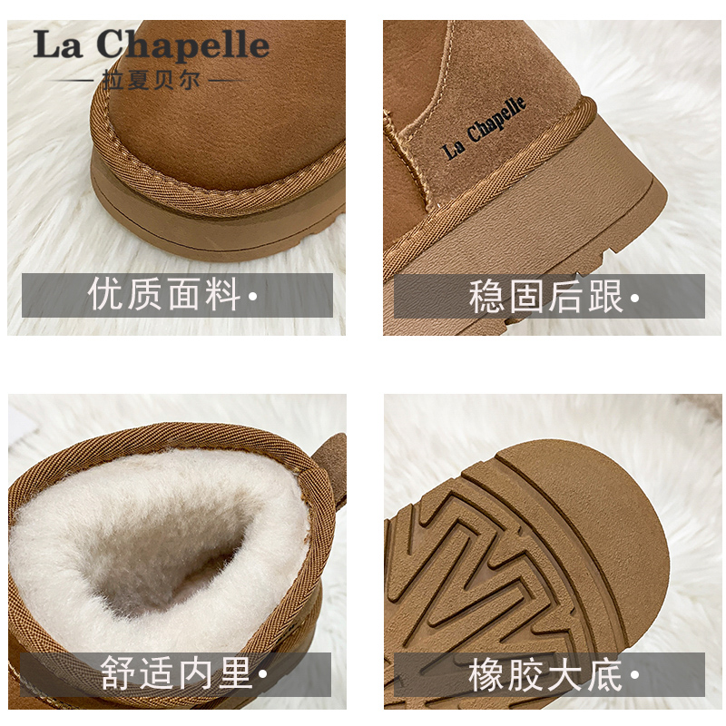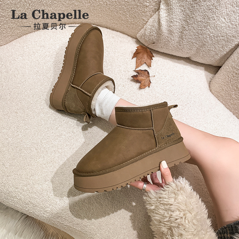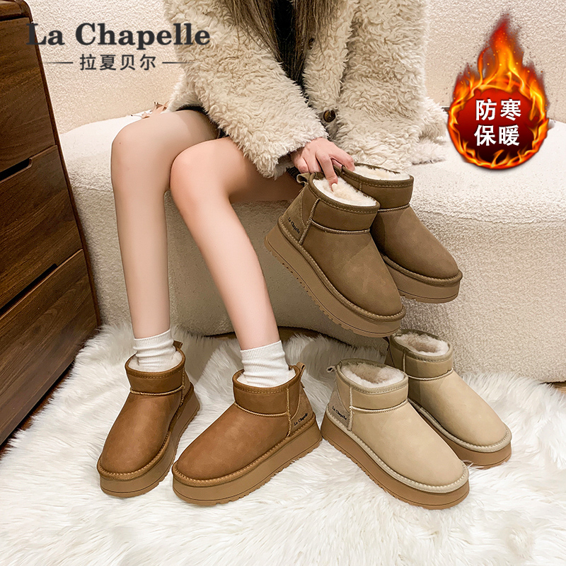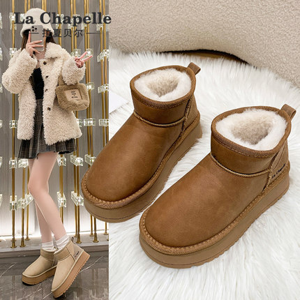 拉夏贝尔真皮雪地靴女2025冬季新款厚底短靴加绒加厚大棉鞋冬鞋子