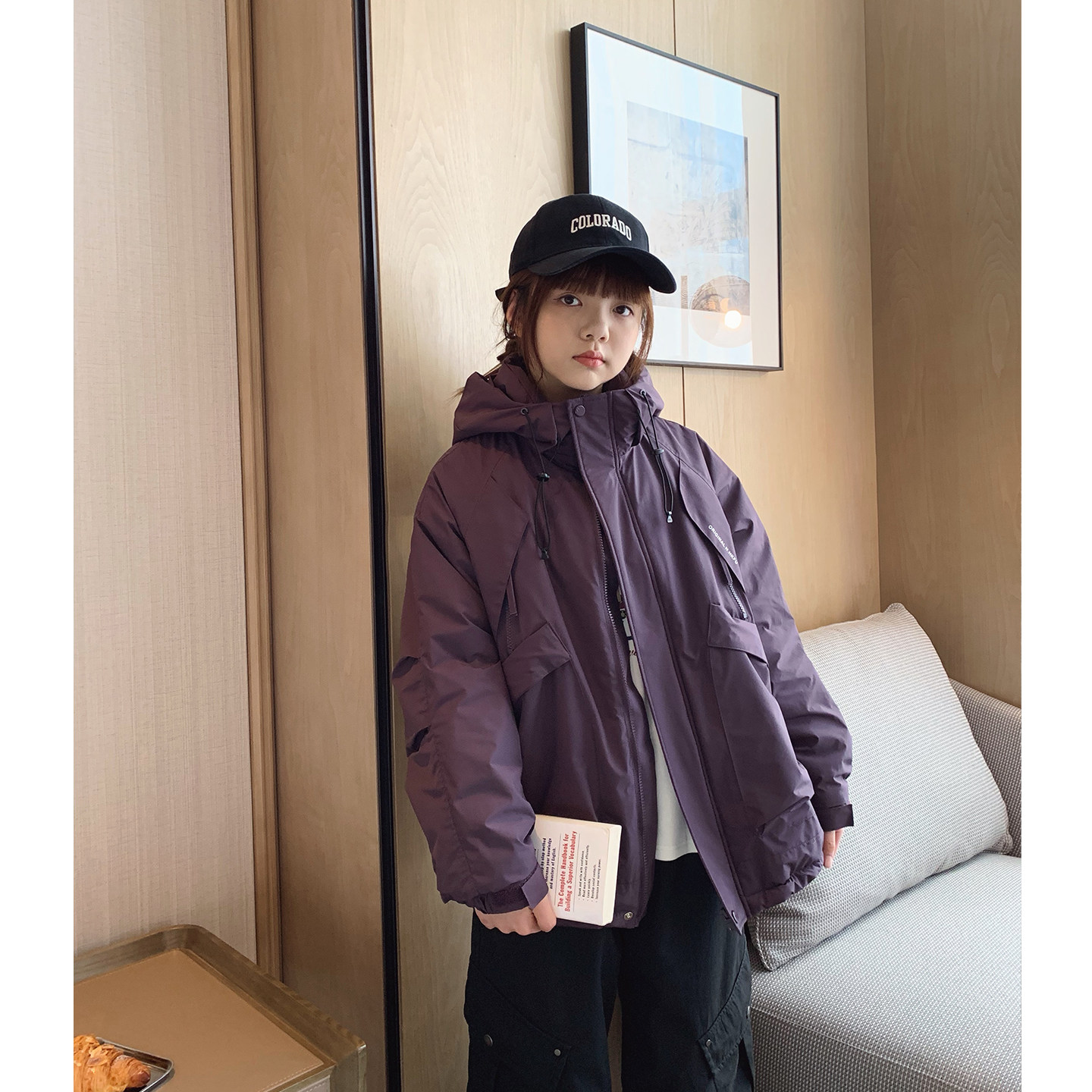 时尚紫色户外加厚夹棉连帽冲锋衣