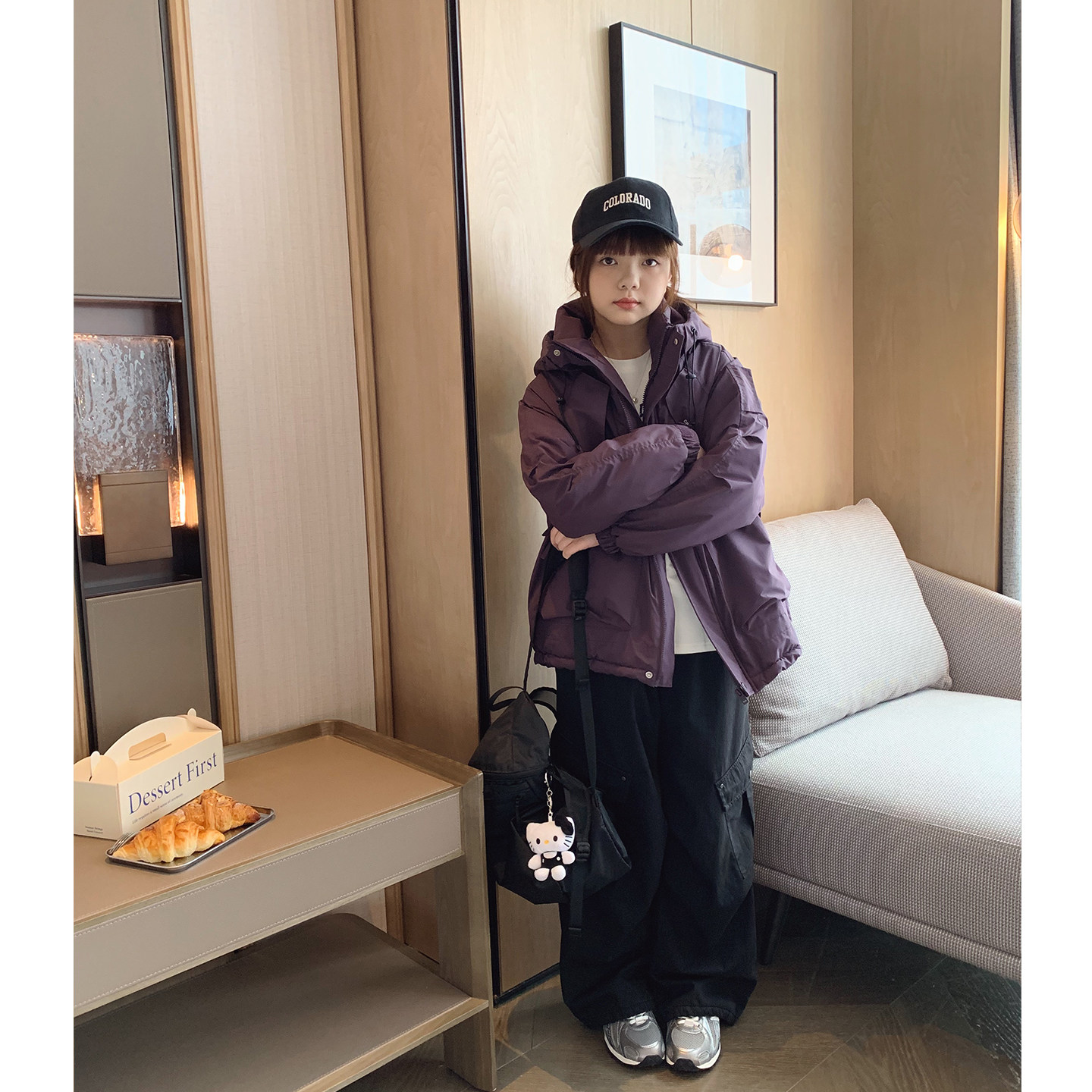 女大童夹棉连帽冲锋衣2025冬装新款青少年休闲保暖外套学生厚棉服