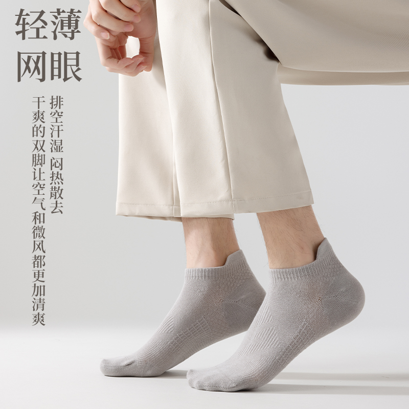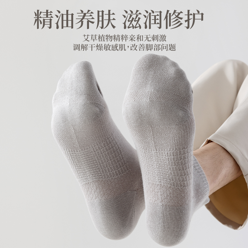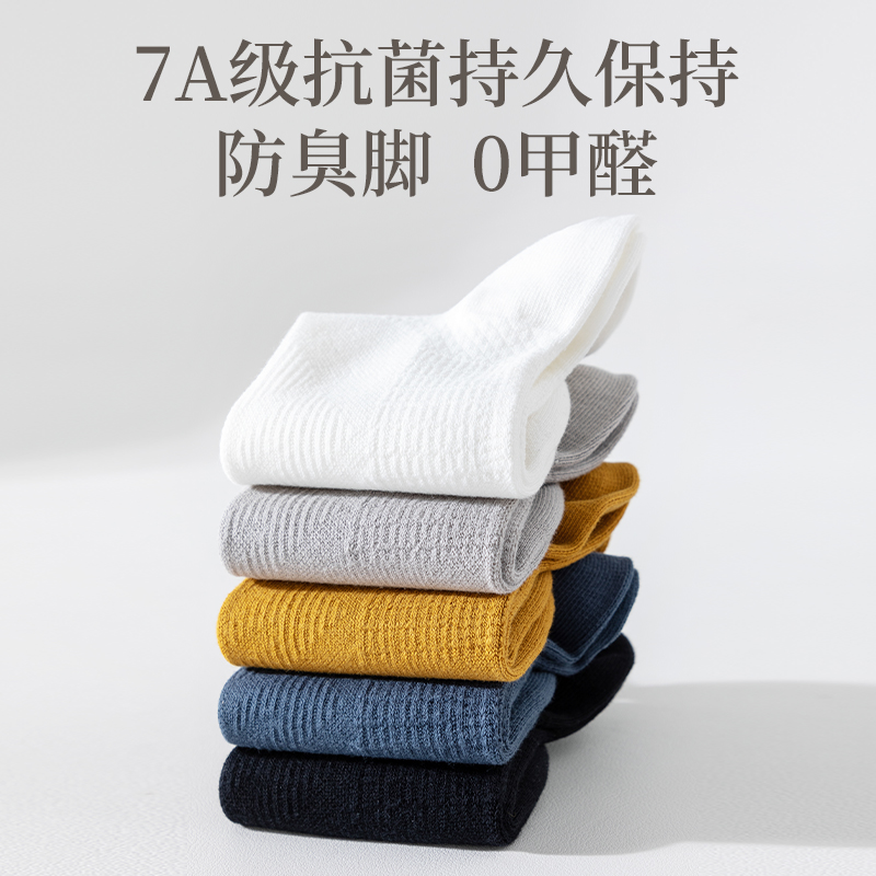 袜子男春秋短筒运动船袜纯棉防臭植物抗菌少年休闲袜一体缝制无骨