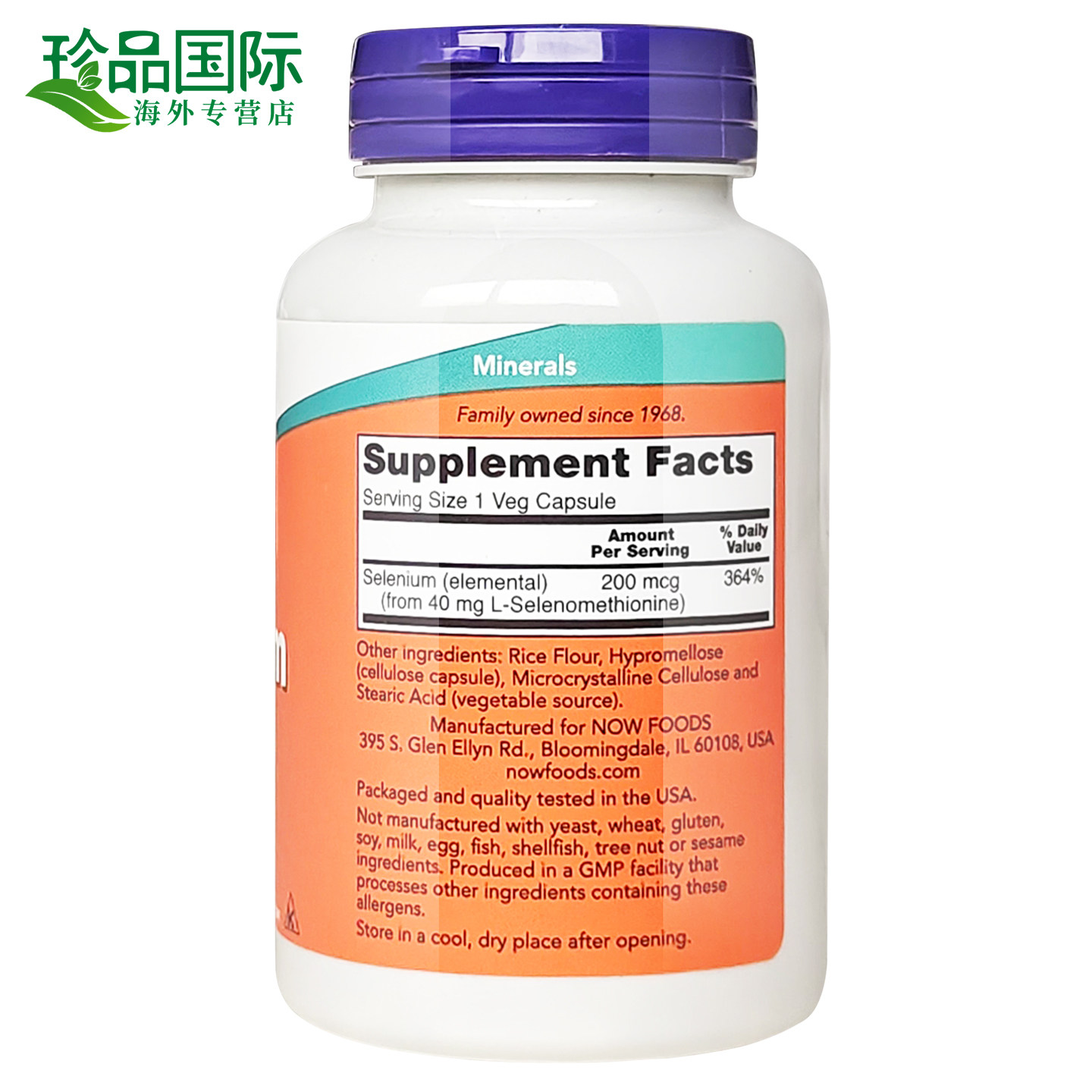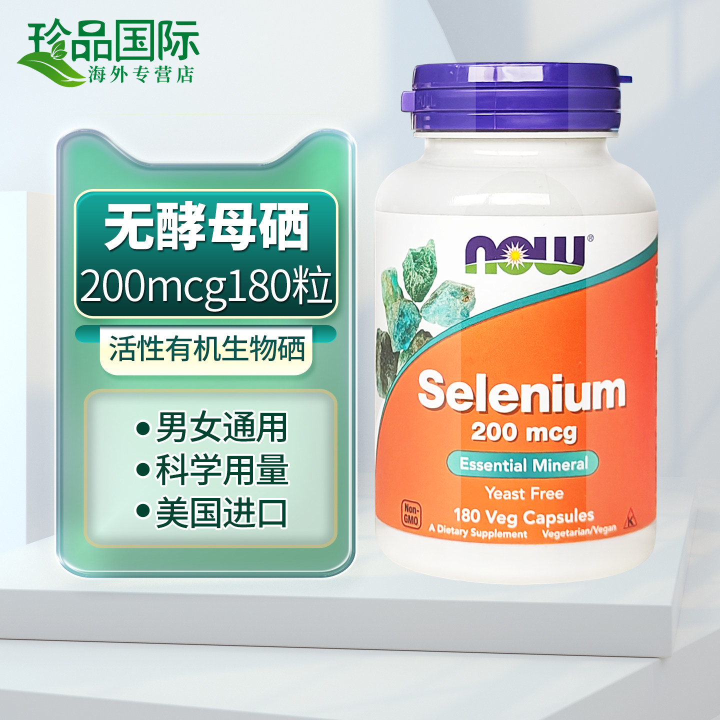 now诺奥 硒片补硒胶囊180粒 selenium 富硒无酵母硒元素美国进口