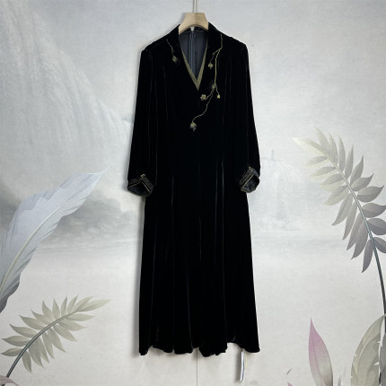 25秋新真丝丝绒连衣裙女气质满分桑蚕丝显瘦重工刺绣真丝长袖长裙