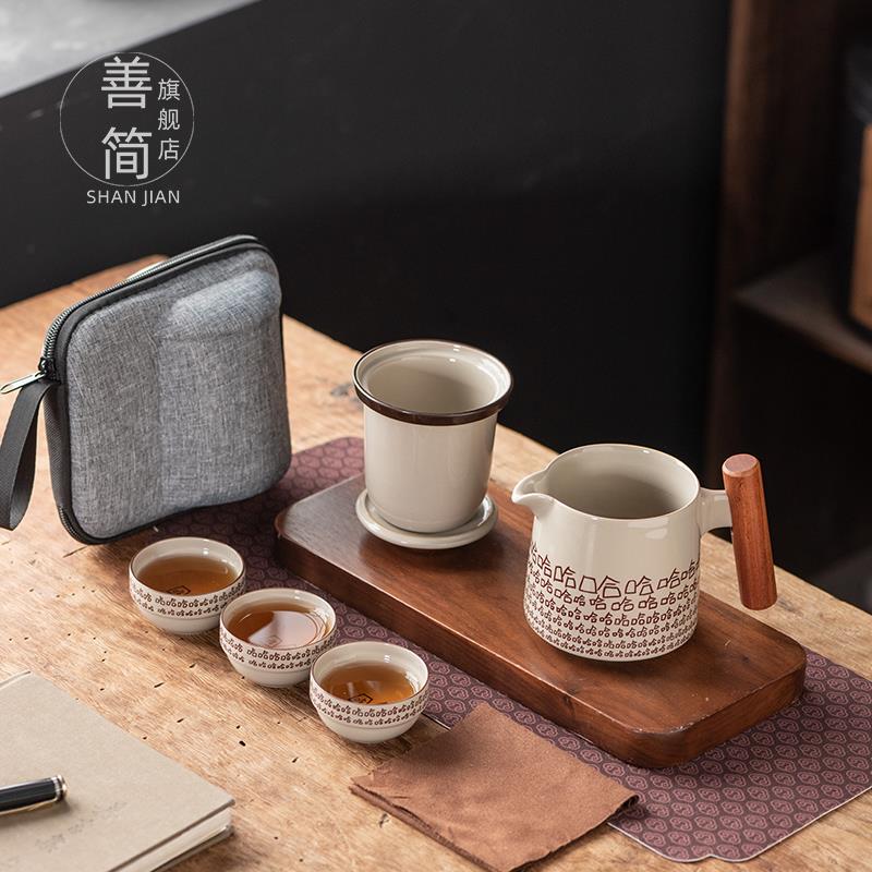 善简旅行茶具套装便携收纳户外家用快客杯陶瓷泡茶壶一壶两杯三杯