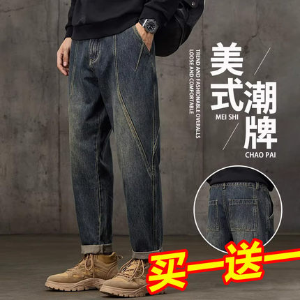 Yishion以纯实体店同款牛仔裤子男2025新款潮牌直筒宽松工装美式