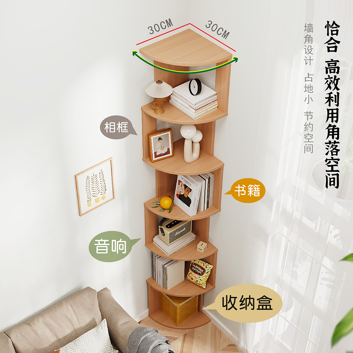 实木转角书柜拐角书架飘窗柜北欧客厅卧室现代简约置物架落地