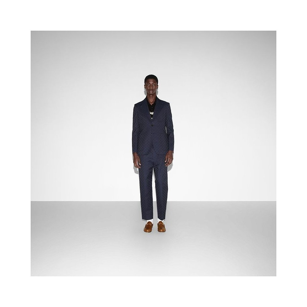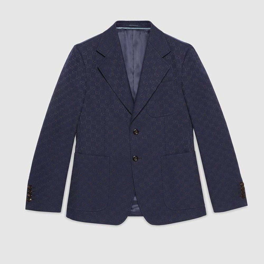 自营欧洲直邮Gucci古驰男士蓝色的GG棉混纺连衣裙夹克