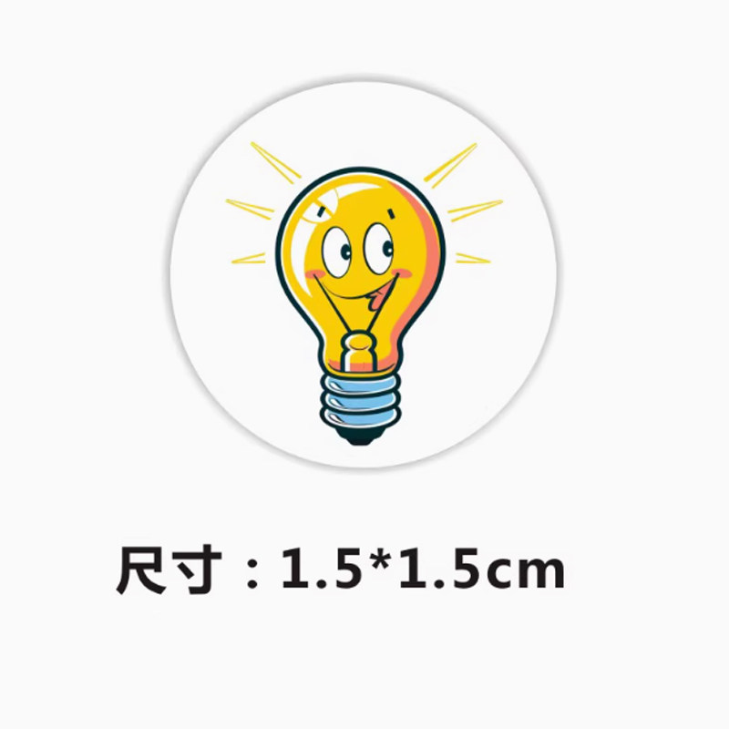 卡通迷你灯泡贴纸1.5cm黄色灯泡灵感圆形黏贴小贴可爱卡通标签