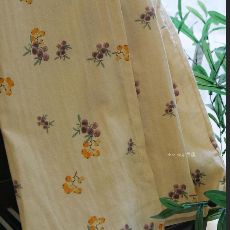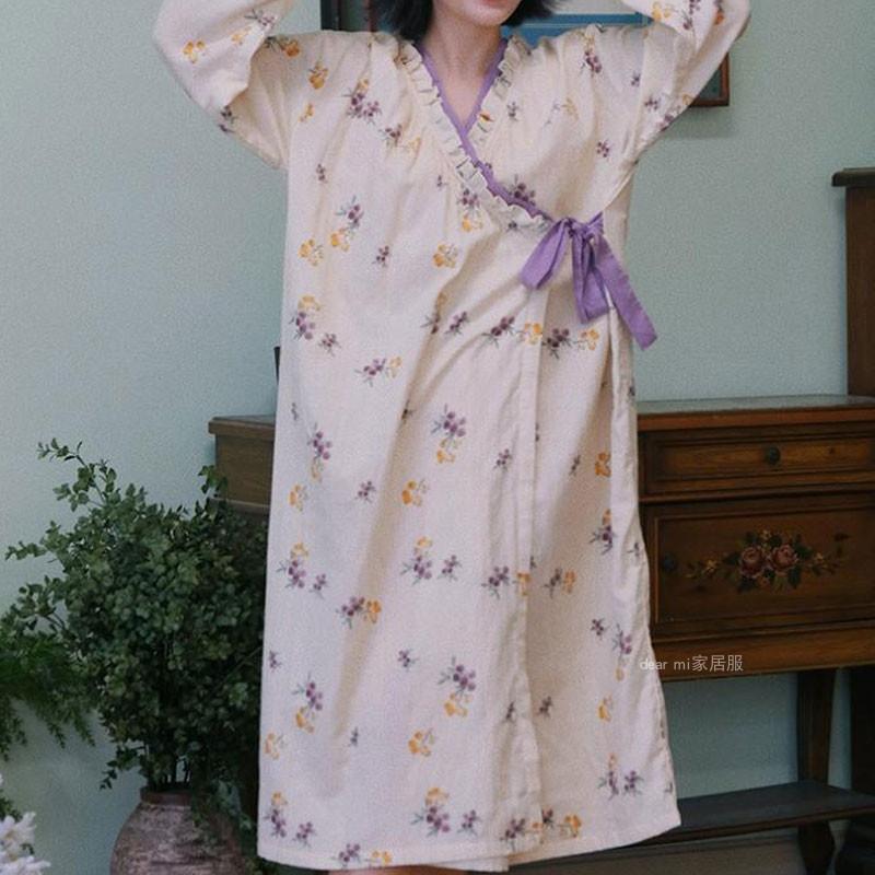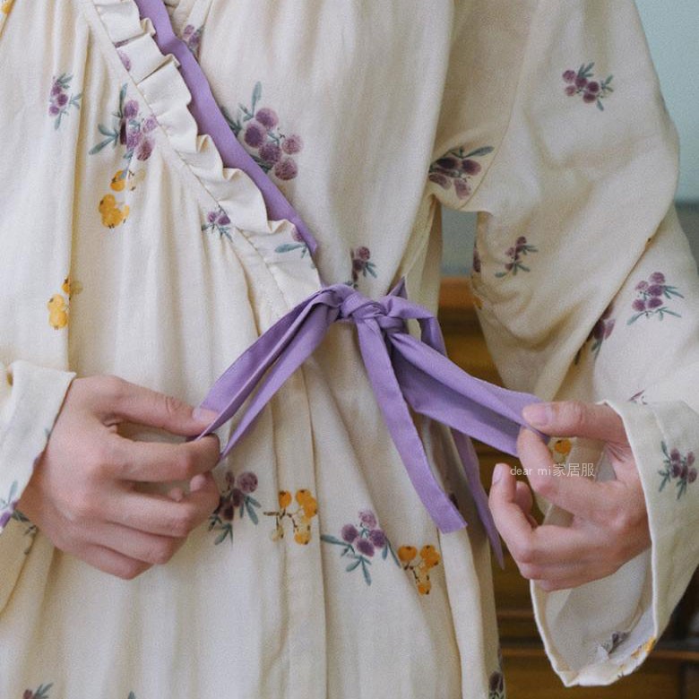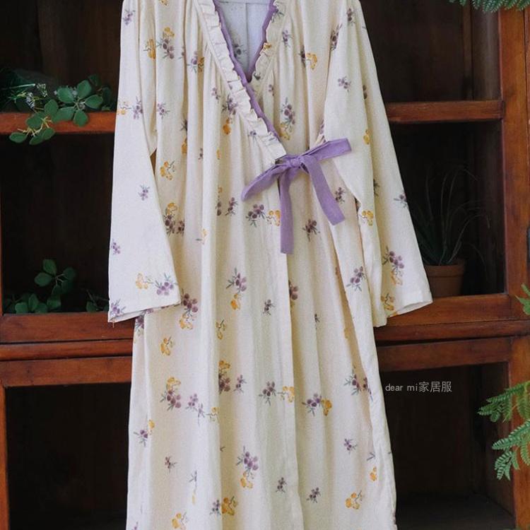 睡衣女春秋纯棉纱布枇杷汉服长袖浴袍中式国风家居服四季睡袍睡裙