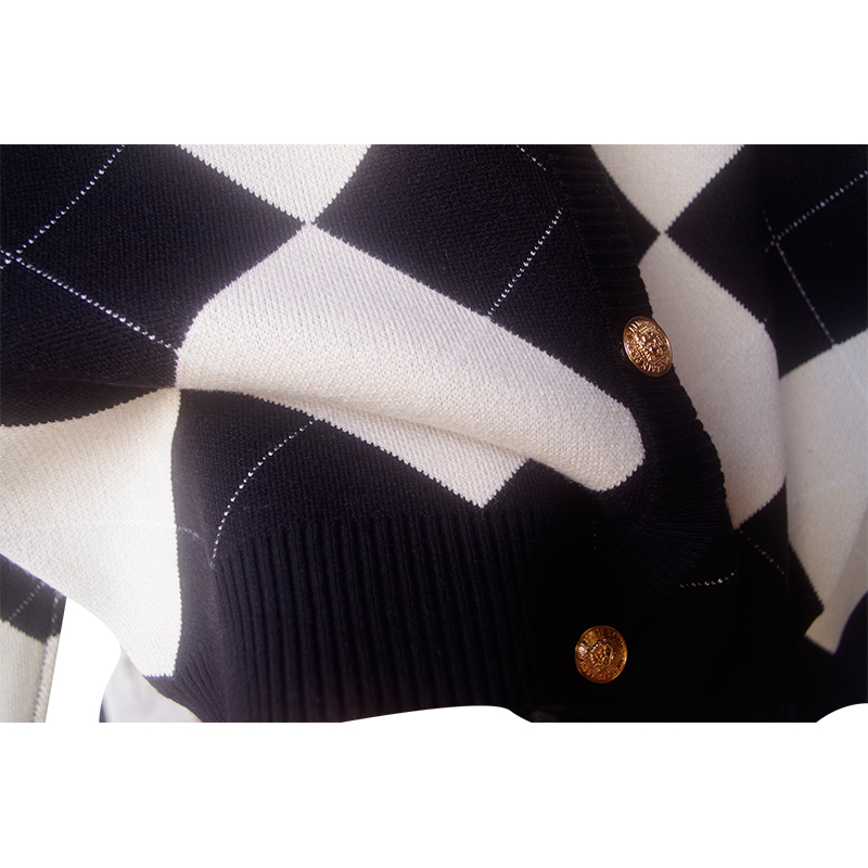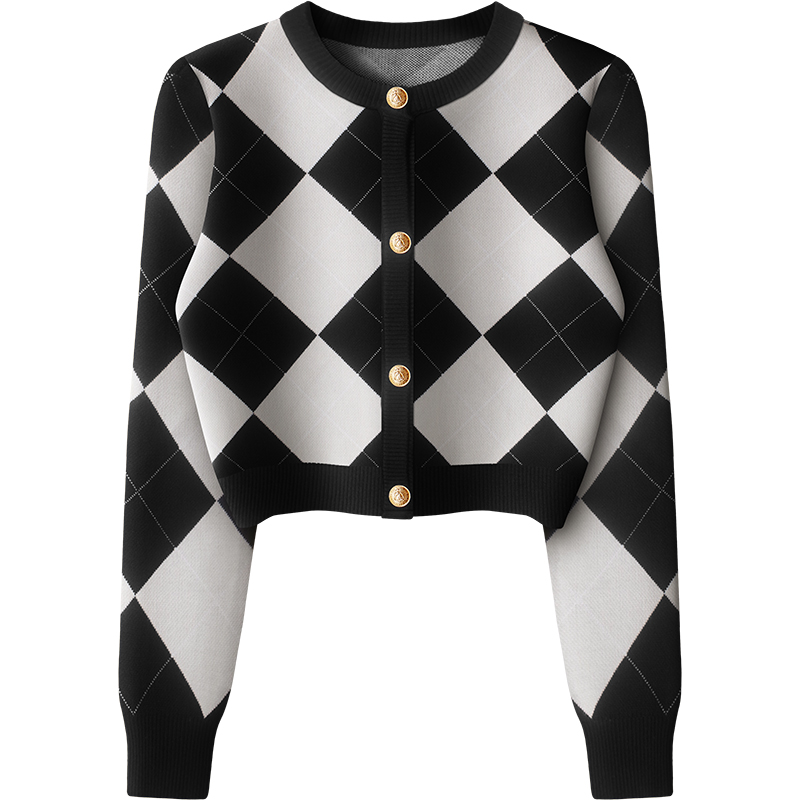 秋冬加厚高级感高腰毛衣外套女保暖宽松显瘦针织开衫菱格外穿上衣