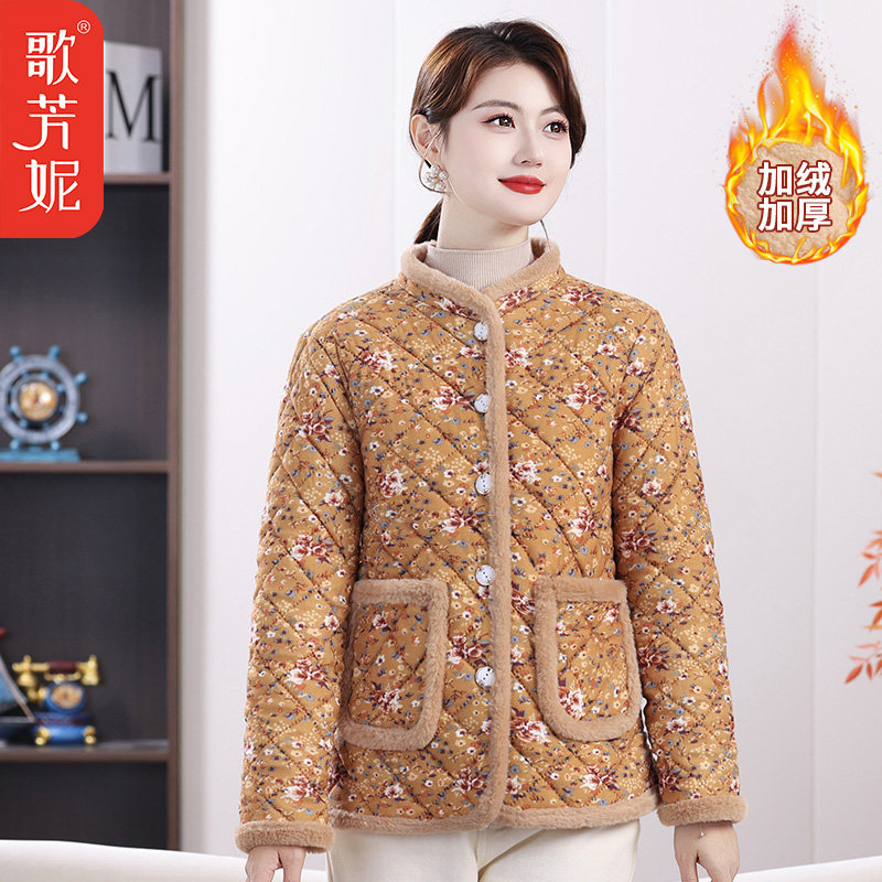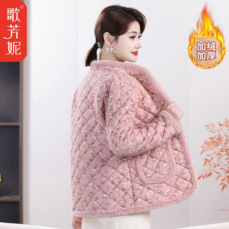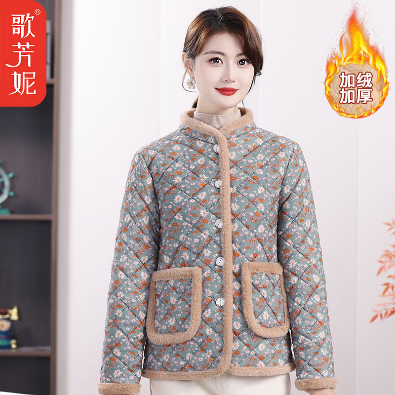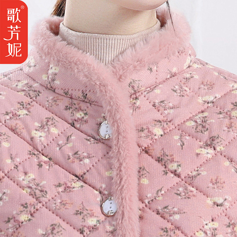 冬季加绒加厚保暖小棉袄妈妈外套女中老年女装冬季碎花棉服棉衣女