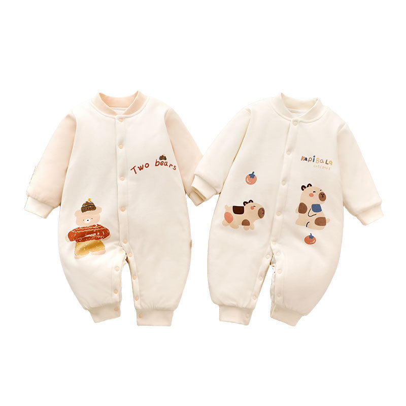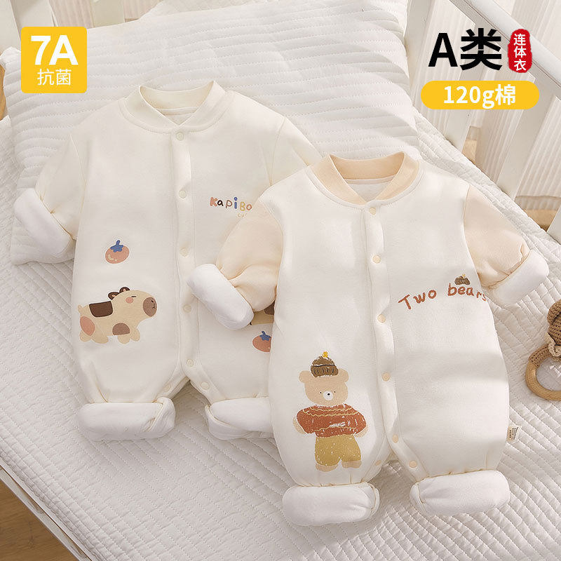 婴儿夹棉连体衣秋冬季男女宝宝外出棉服哈衣纯棉加厚加棉120g爬服