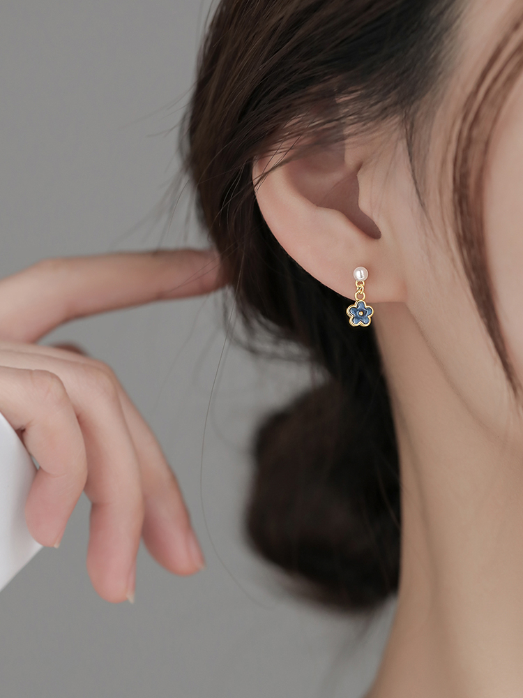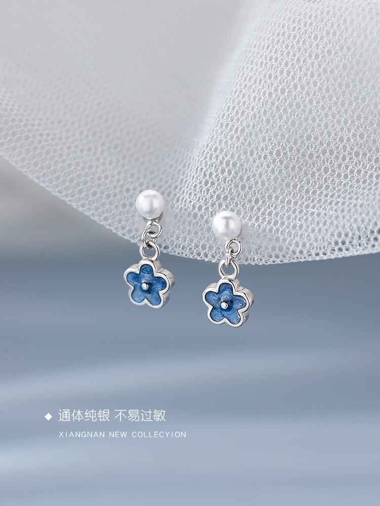 S925纯银花朵珍珠耳钉女气质高级感小众设计耳环2022年新款潮耳饰