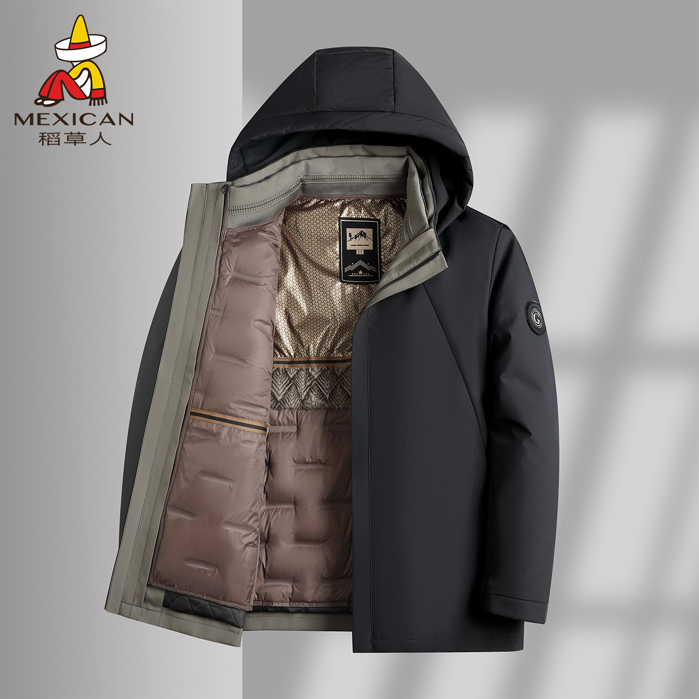 稻草人鹅绒派克服男冬季中老年