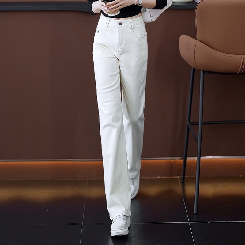 白色纯棉直筒牛仔裤女秋季2025新款高腰垂感小个子阔腿女裤春秋款