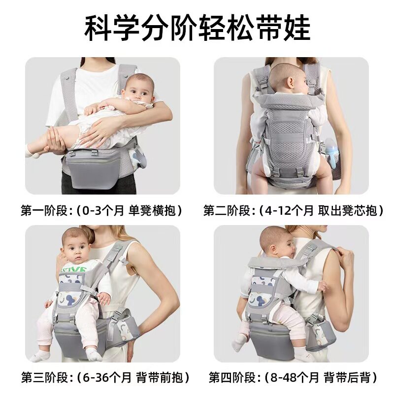 德国新款婴儿背带腰凳外出多功能四季透气前后背通用背带抱娃神器