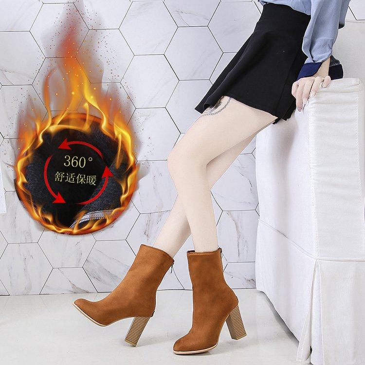 百搭马丁靴2025年新款秋冬季粗跟中筒显瘦瘦短靴女靴子绒面高跟鞋