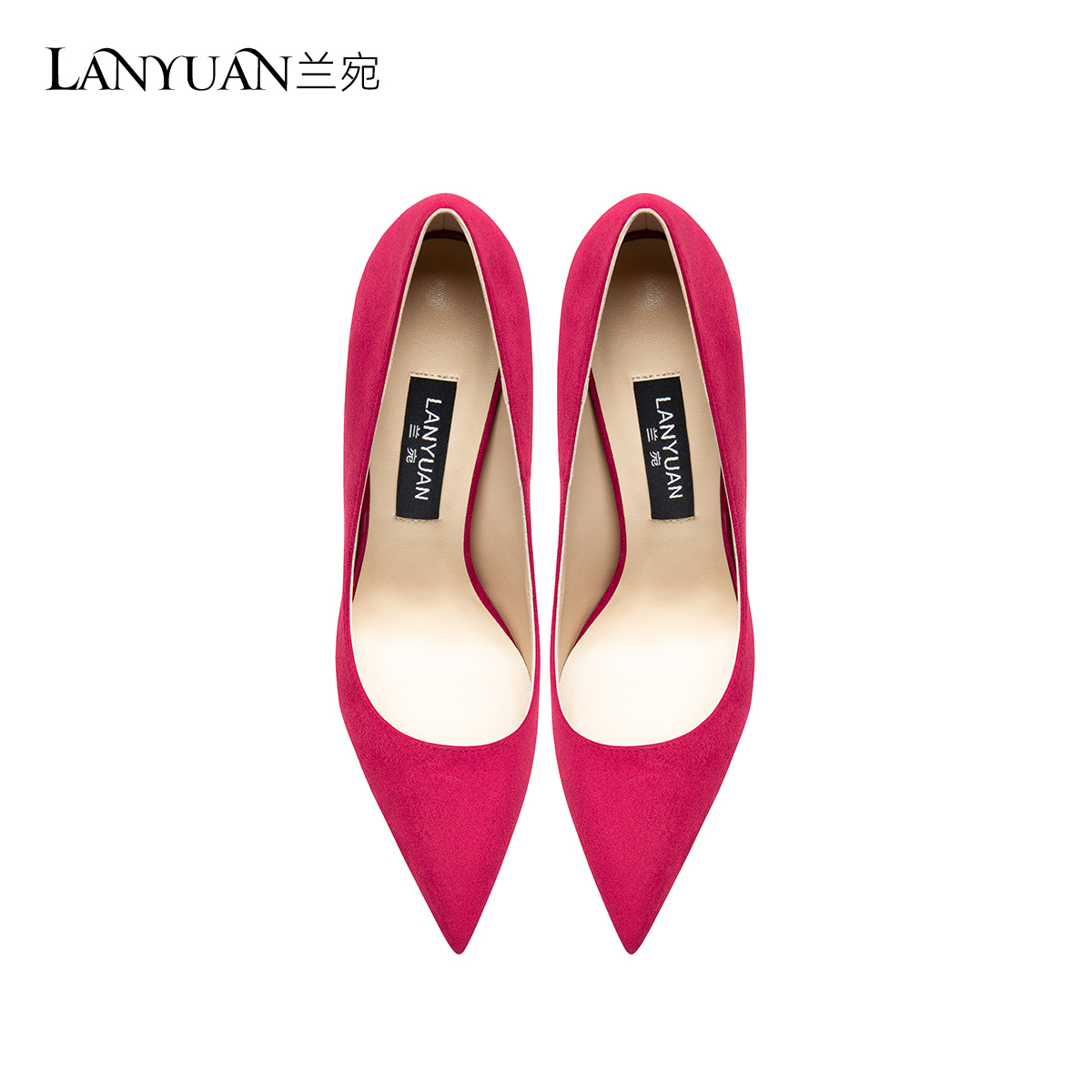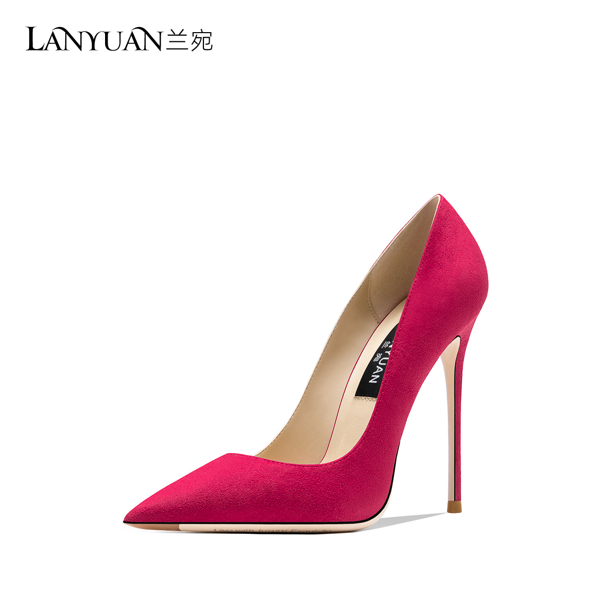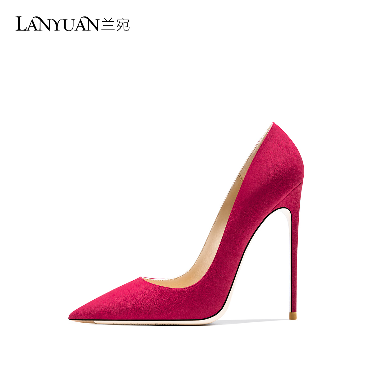 兰宛2024春秋新款高跟鞋女玫红色绒面小众尖头12厘米细跟性感单鞋