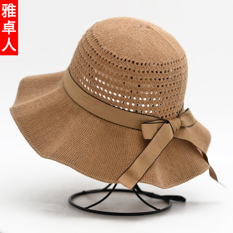 网红帽子女春夏季户外百搭渔夫帽夏天透气沙滩遮阳帽防晒太阳帽