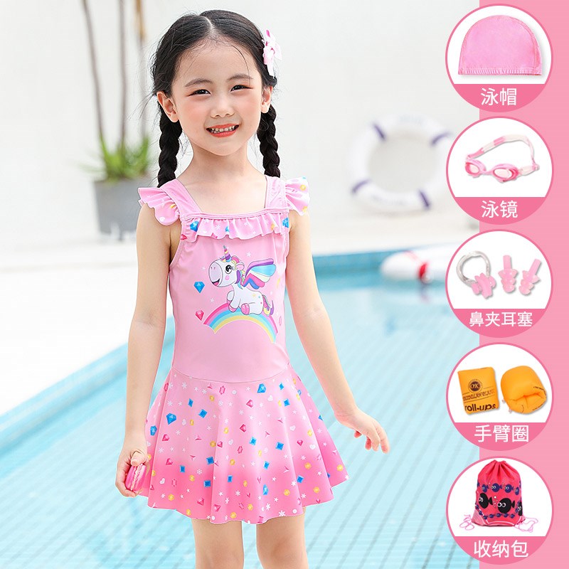 儿童泳衣女孩2025新款女童游泳衣洋气连体中大童防晒裙式公主泳装