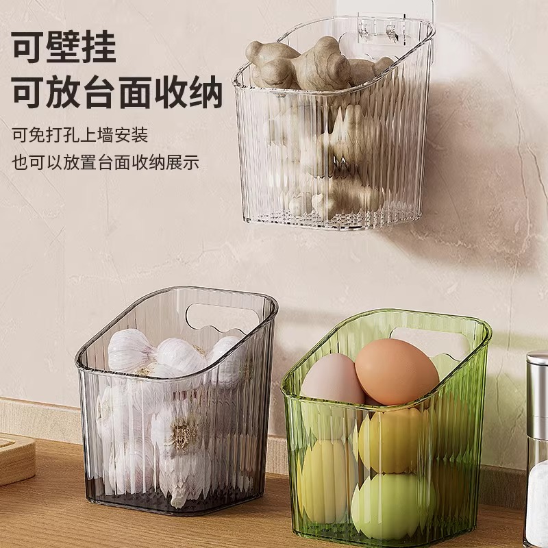 收纳盒壁挂式免打孔厨房置物架姜蒜生姜调料大蒜收纳筐透明多功能