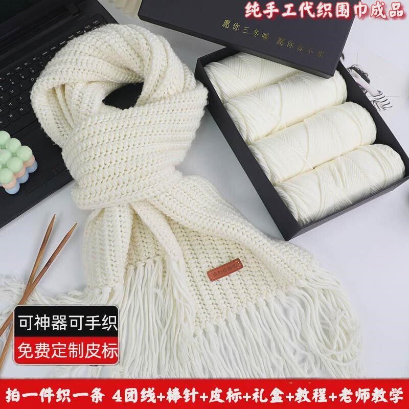 围巾手工编织diy自送织粗情人棉毛线团材料包中男女朋友围脖新品