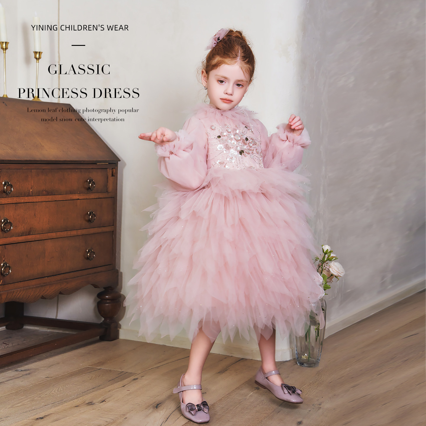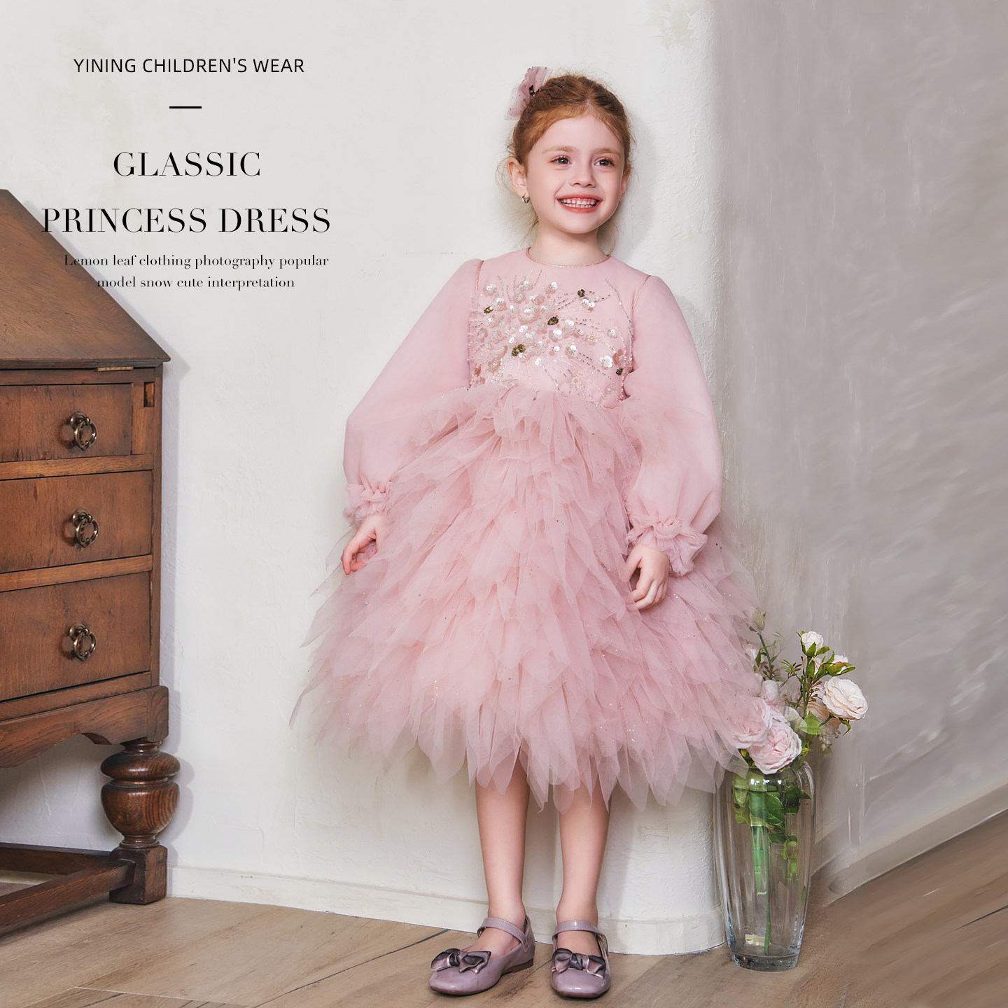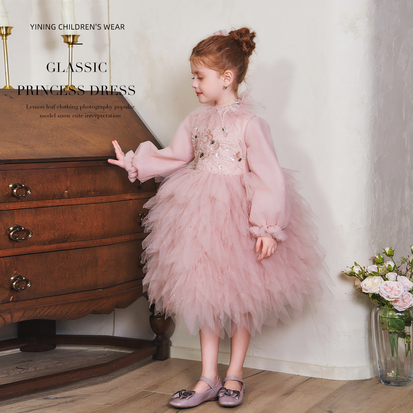 秋冬大女童连衣裙冬季新款小女孩粉色公主裙冬装儿童宝宝蓬蓬裙子
