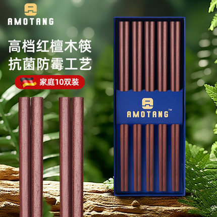 高档抗菌红檀木筷家用中式耐高温实木防霉家庭筷子防滑可入洗碗机