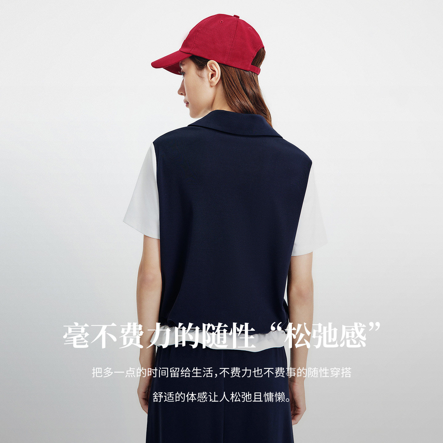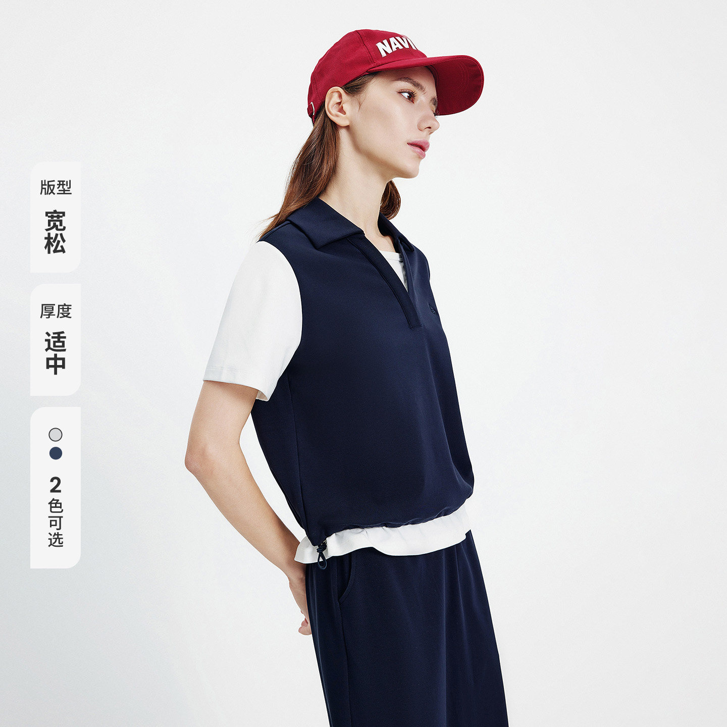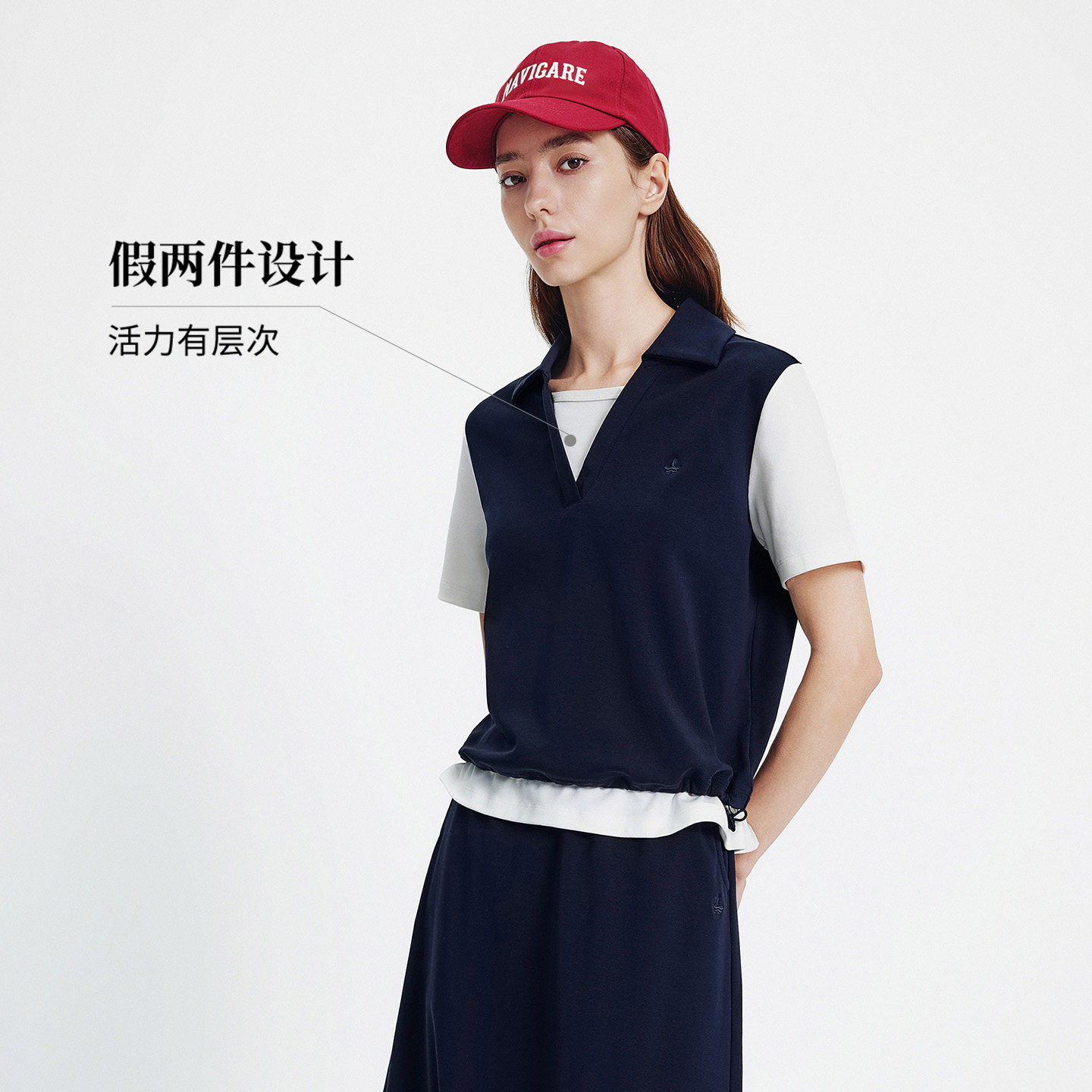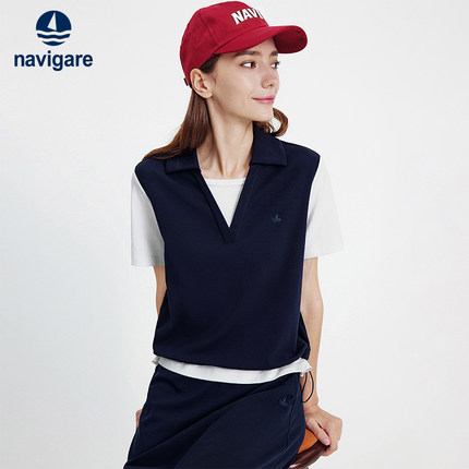 Navigare意大利小帆船假两件短袖polo衫女2026春夏宽松设计感上衣