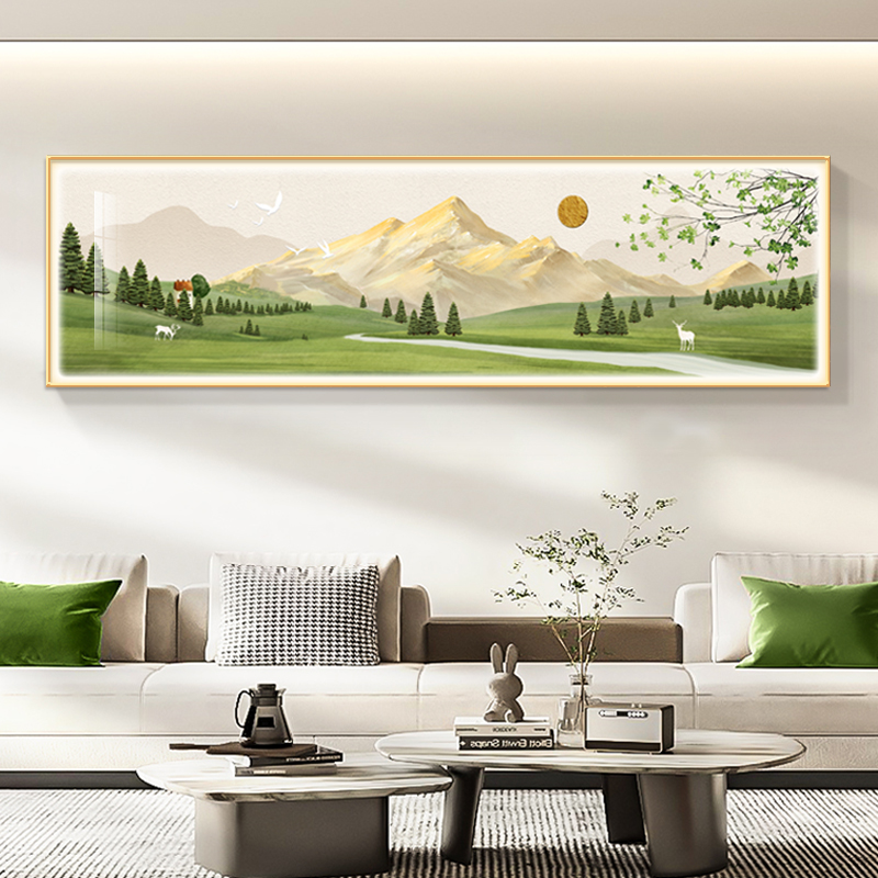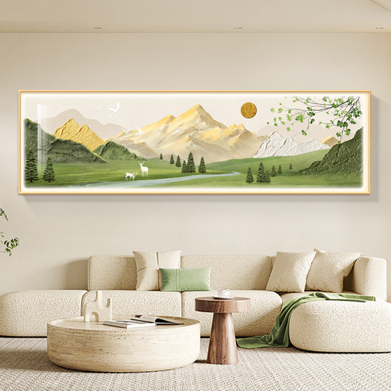 奶油风日照金山东墙客厅装饰画沙发背景墙壁画油画山水风景床头画