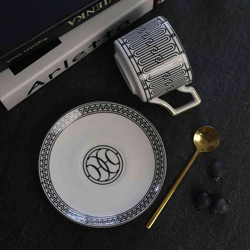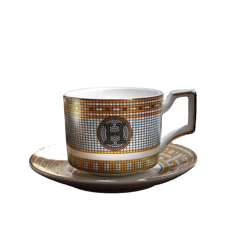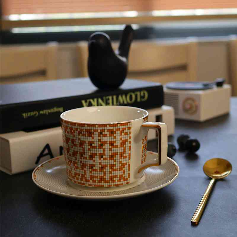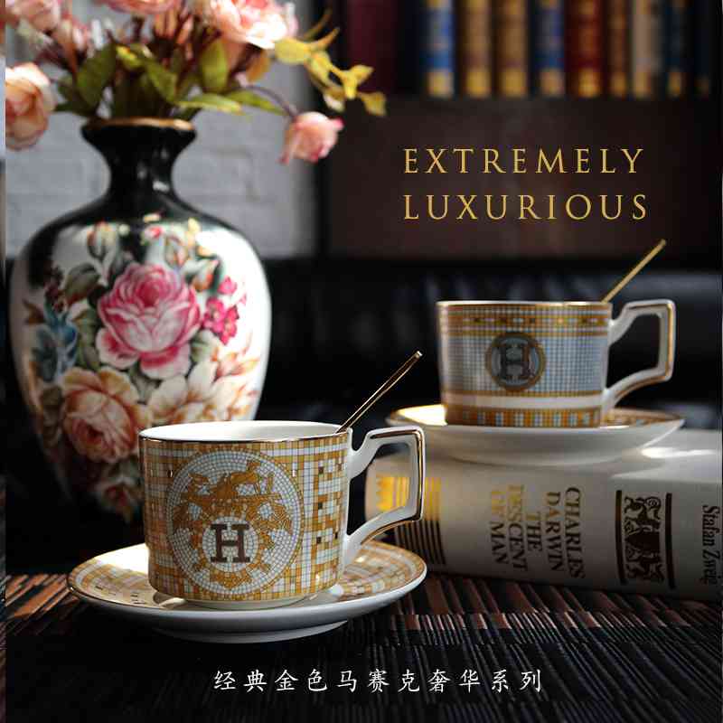 欧式金色马赛克咖啡杯碟套装奢华家用陶瓷杯碟勺带杯架轻奢复古风