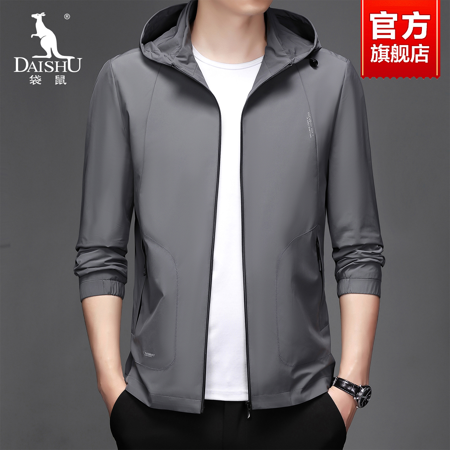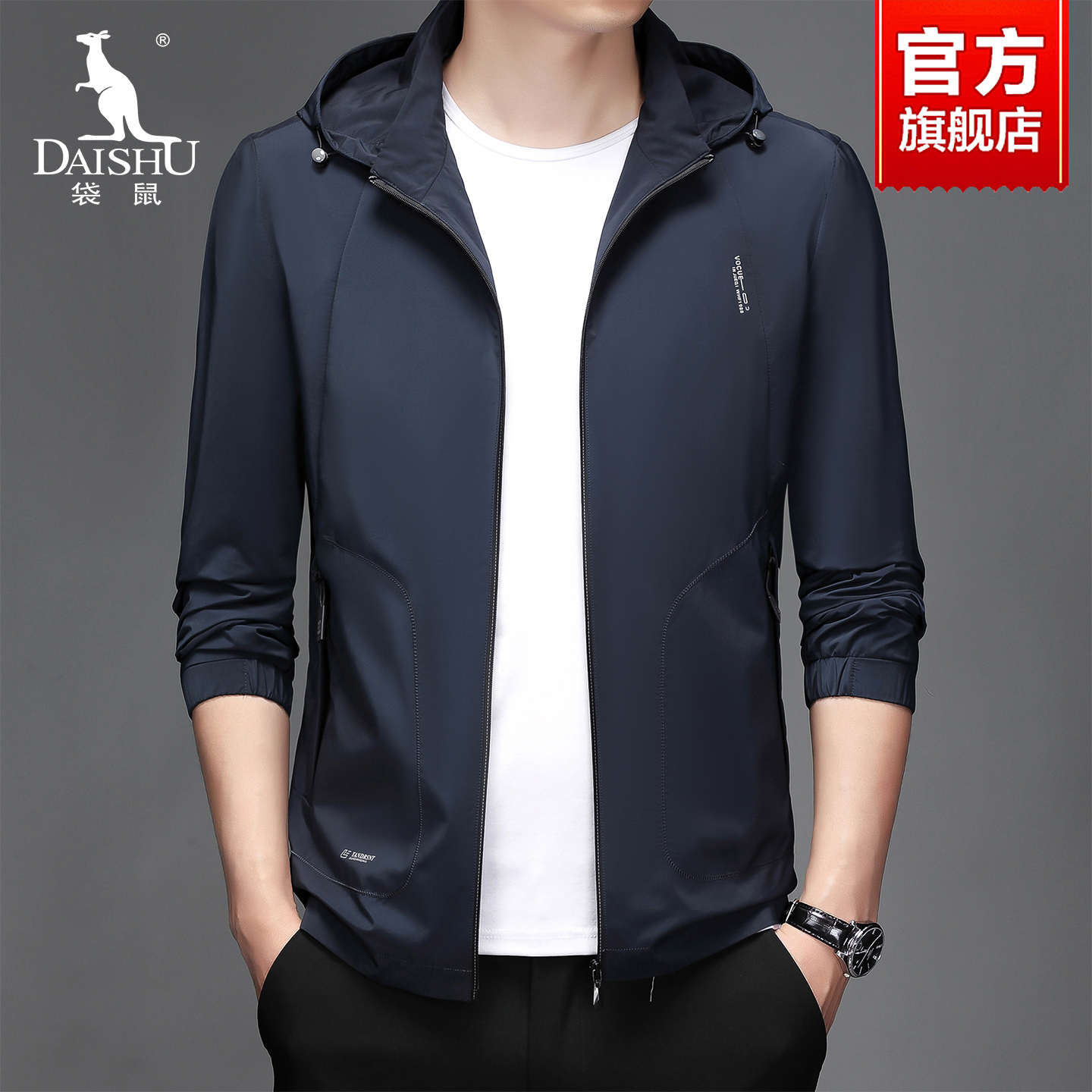 袋鼠男士夹克2025春秋新款中老年可拆卸连帽商务休闲短款上衣外套