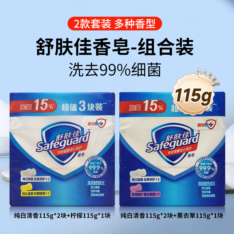 舒肤佳香皂纯白清香薰衣草柠檬清香型柠檬正品沐浴皂115g克*3块装