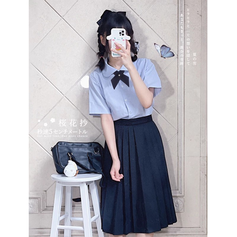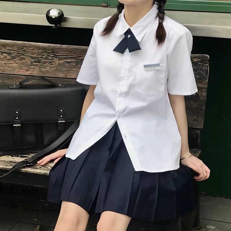 学生jk衬衫中长款百褶半身裙长裙套装大码班服短袖学院风制服女夏