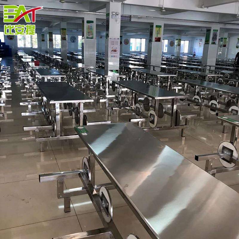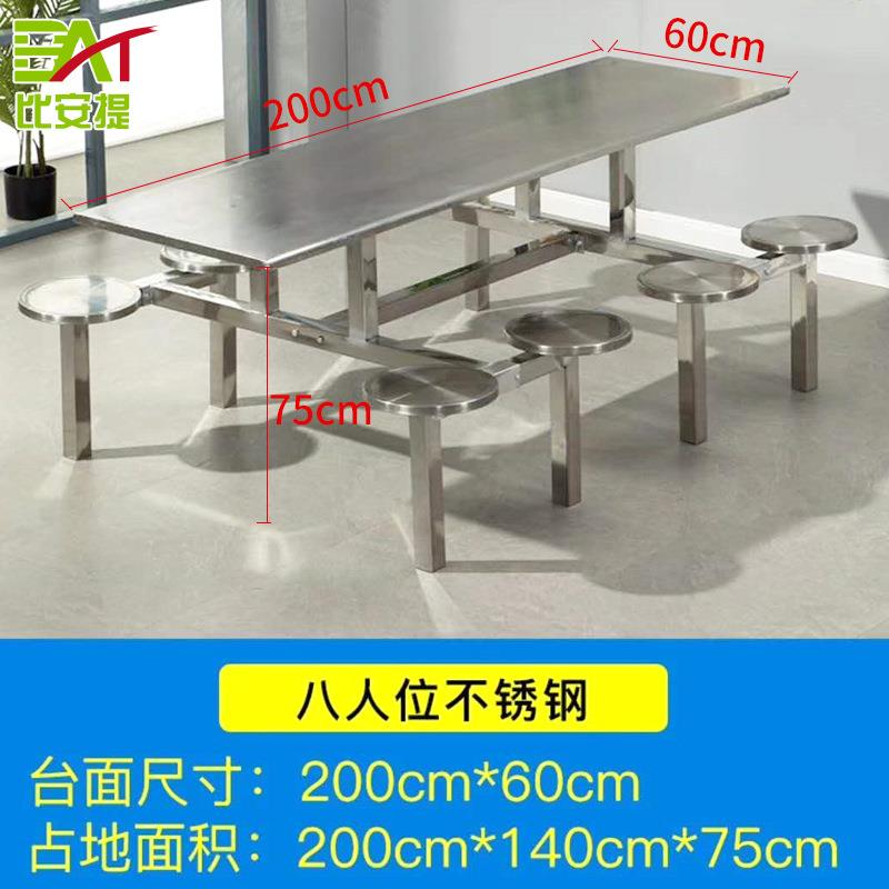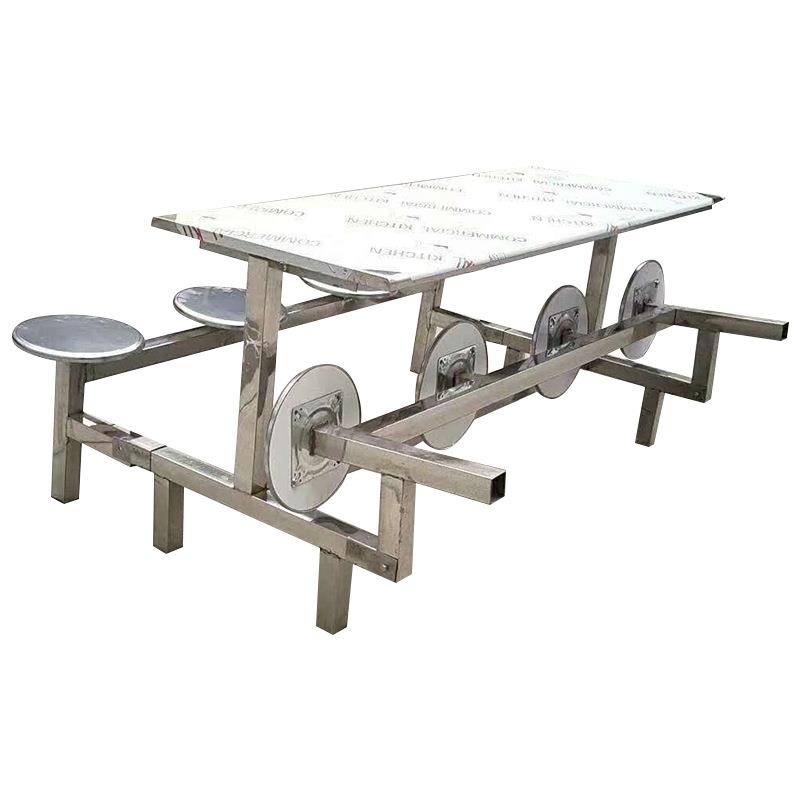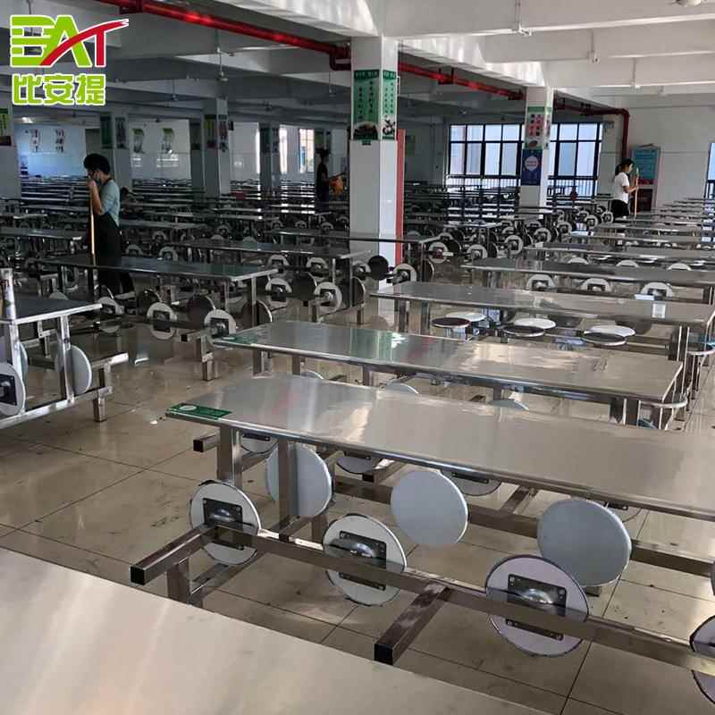 供应学生食堂八人位连体餐桌椅员工食堂可折叠连体餐桌椅组合