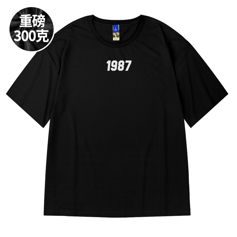 300g重磅美式加肥加大短袖t恤街头大码黑色圆领纯棉简约半袖男潮