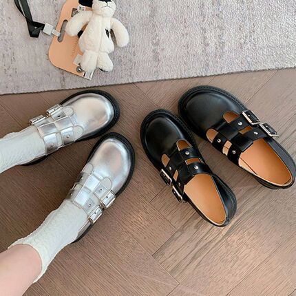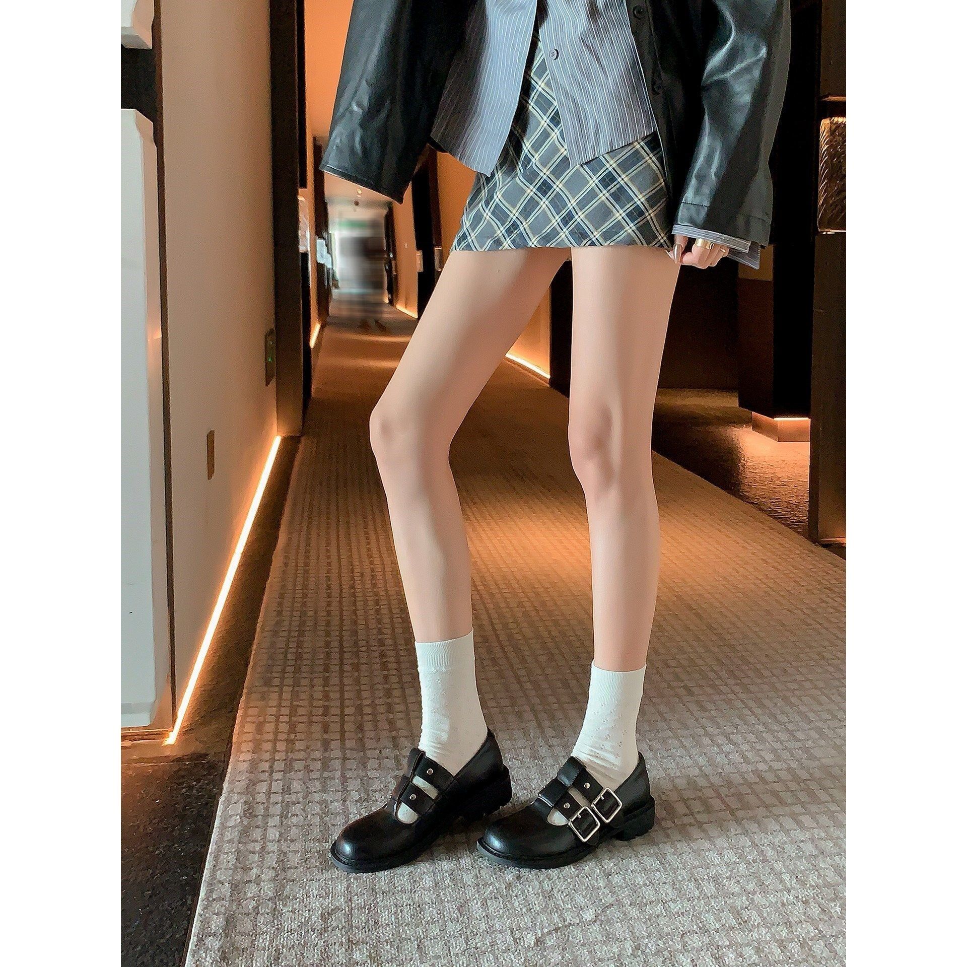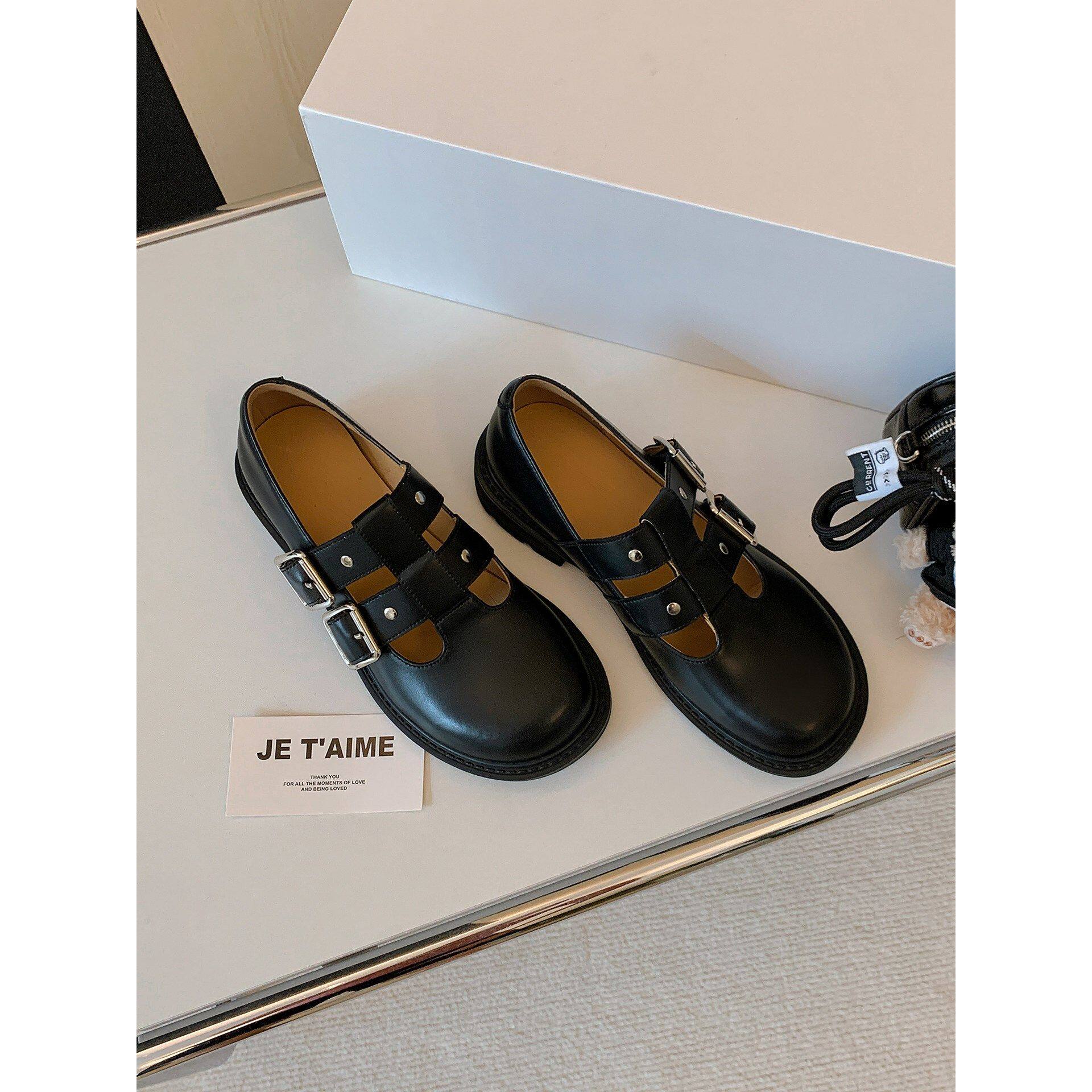 小皮鞋女2026春季新款双排扣真皮百搭芒果头学院风复古玛丽珍鞋