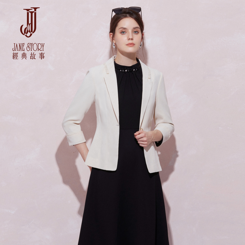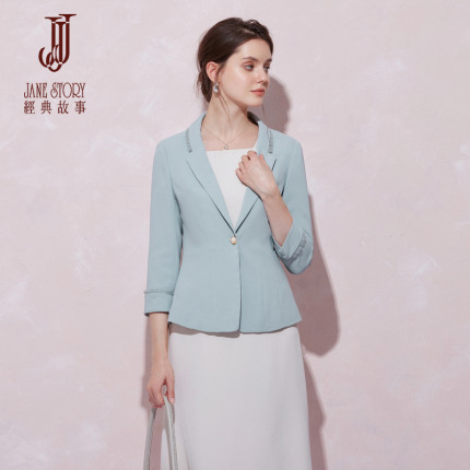 平驳领西装外套女2025春季新款简约优雅一粒扣短款职业通勤西服