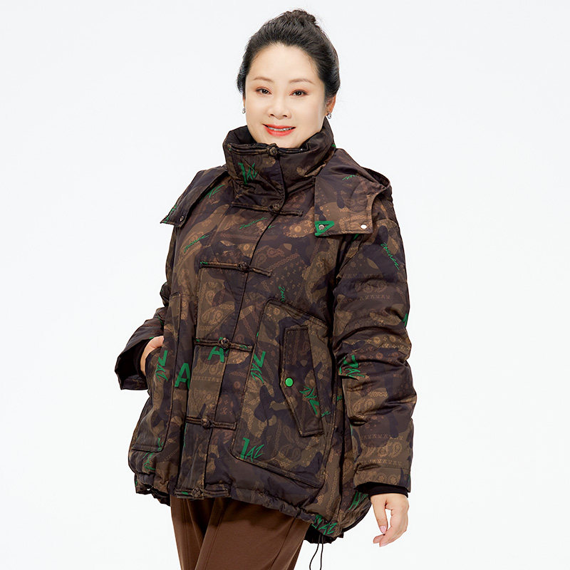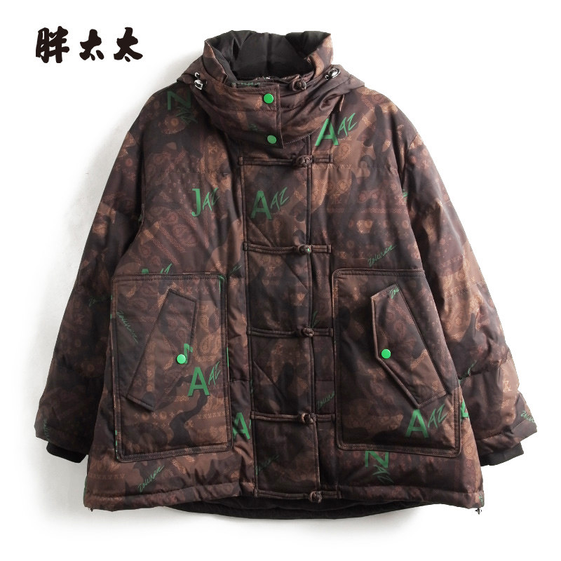 胖太太大码女装冬季新品咖色字母连帽羽绒服中长保暖潮423409310