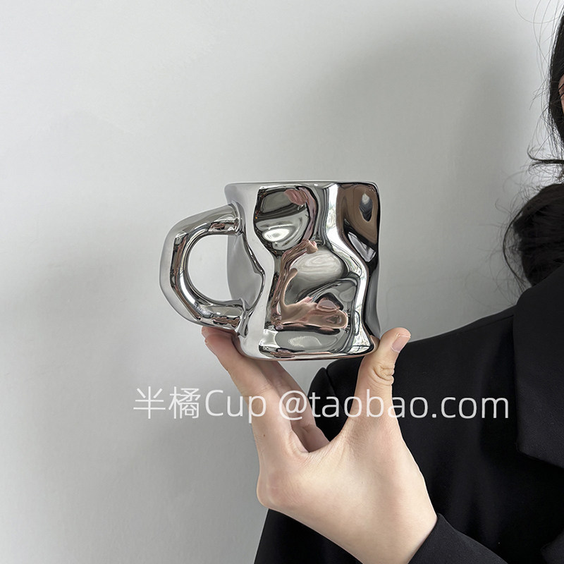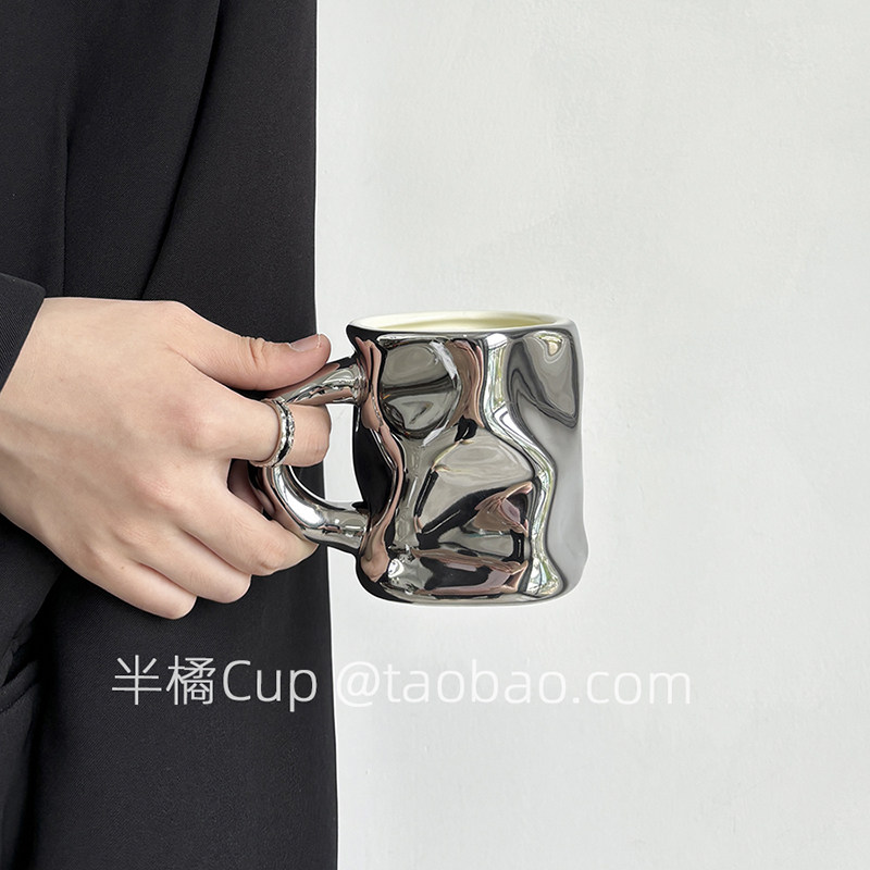 半橘Cup 高级感银箔色不规则扭扭马克杯ins风陶瓷杯情侣水杯礼物
