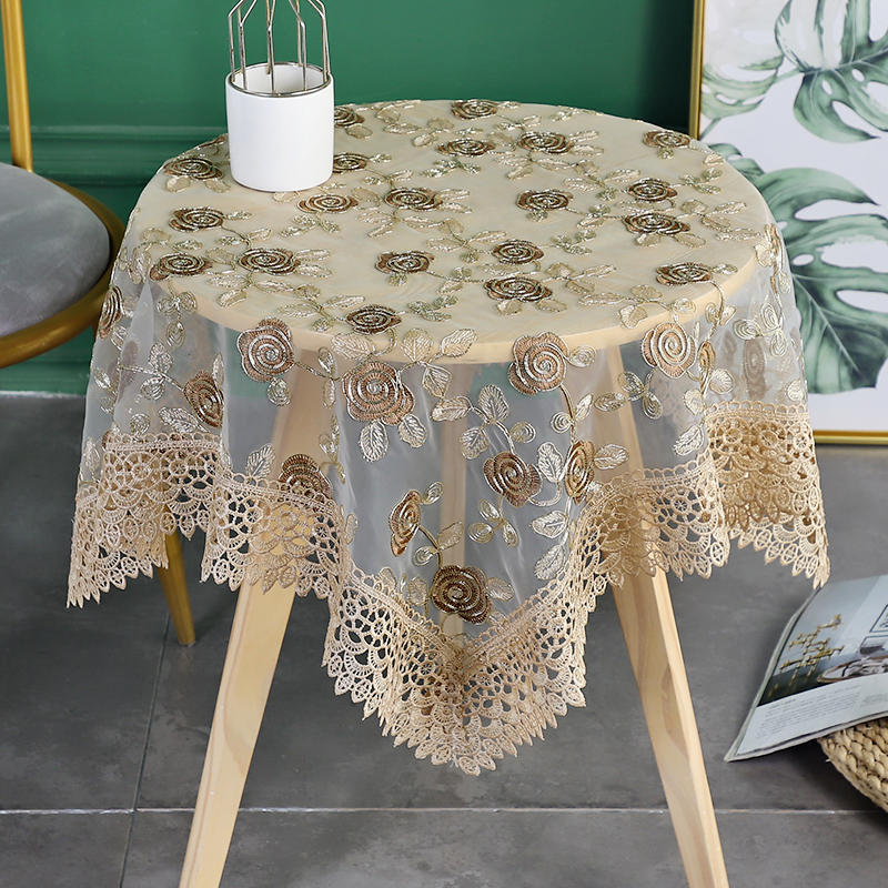 欧式小圆桌桌布布艺蕾丝绣花长方形台布家用防尘盖巾茶几餐桌布