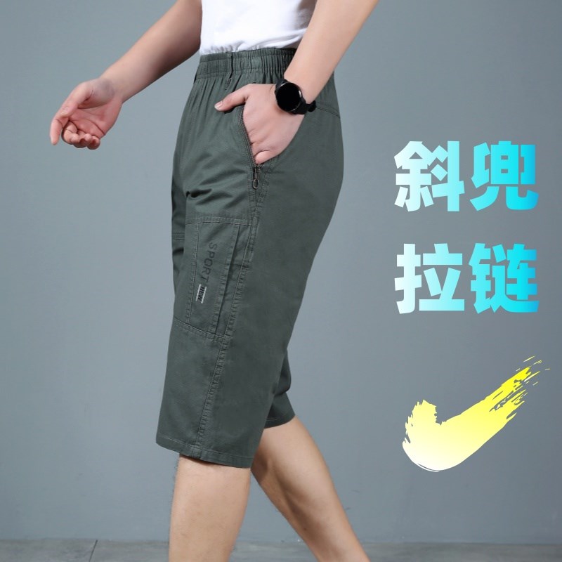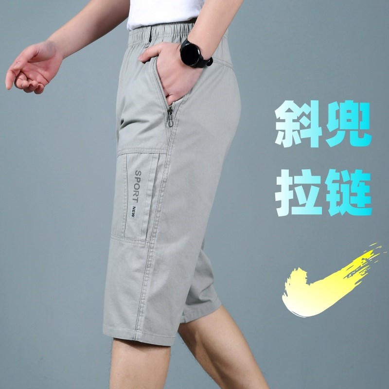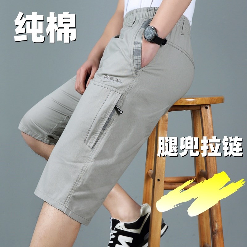 夏季纯棉工装七分裤多口袋拉链男士休闲短裤宽松大码中裤薄款裤衩