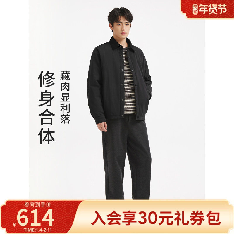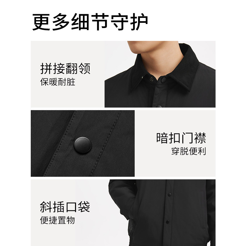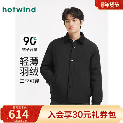 热风男士轻薄款羽绒服2025年冬季新款时尚翻领收口袖保暖羽绒外套