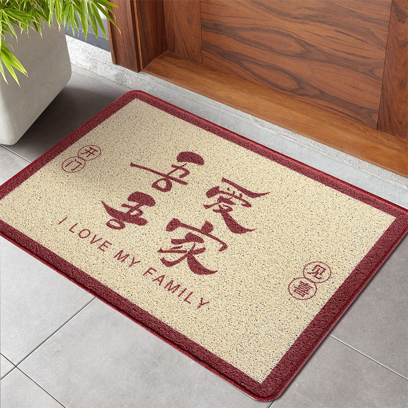 入户门防滑家用地垫进门口门垫玄关客厅脚踩垫新中式红色丝圈地毯